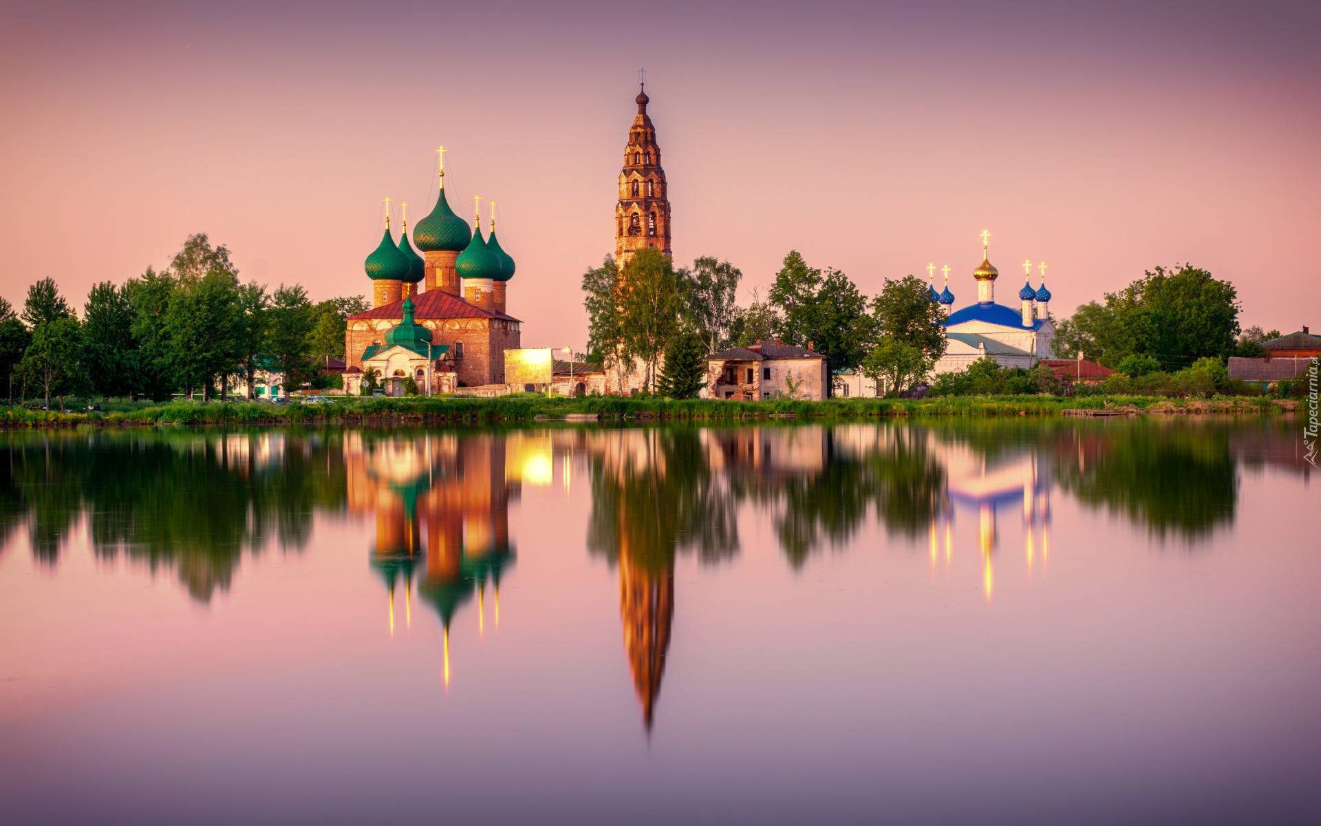 Edytor tapety: Odbicie cerkwi i dzwonnicy w rzece