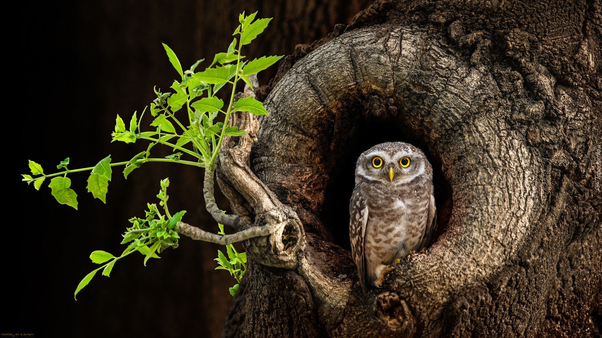 Edytor tapety: Pójdźka w dziupli na drzewie
