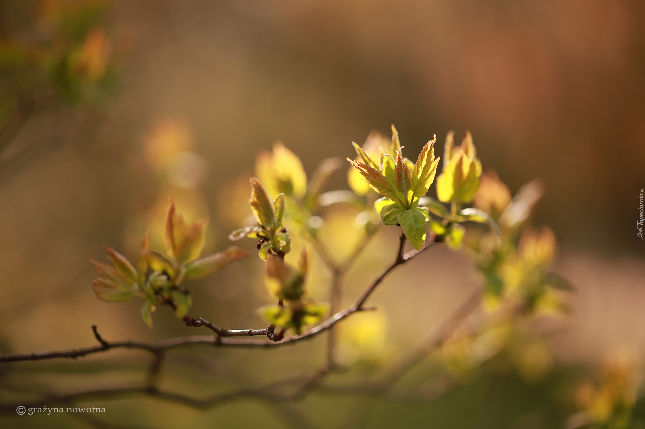 Edytor tapety: Rozkwitające pąki młodych liści na gałązce