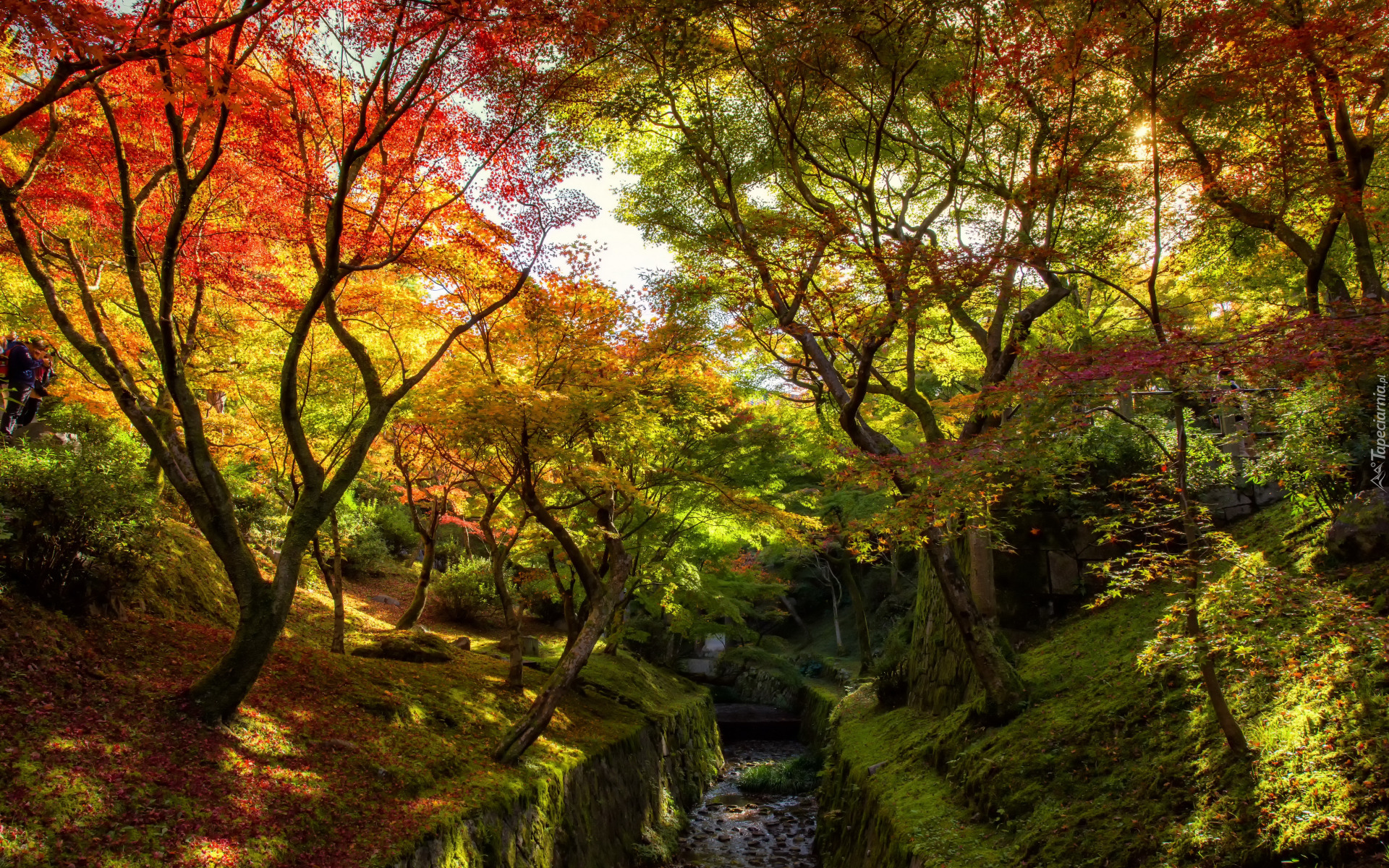 Edytor tapety: Jesienne drzewa nad korytem płytkiej rzeczki