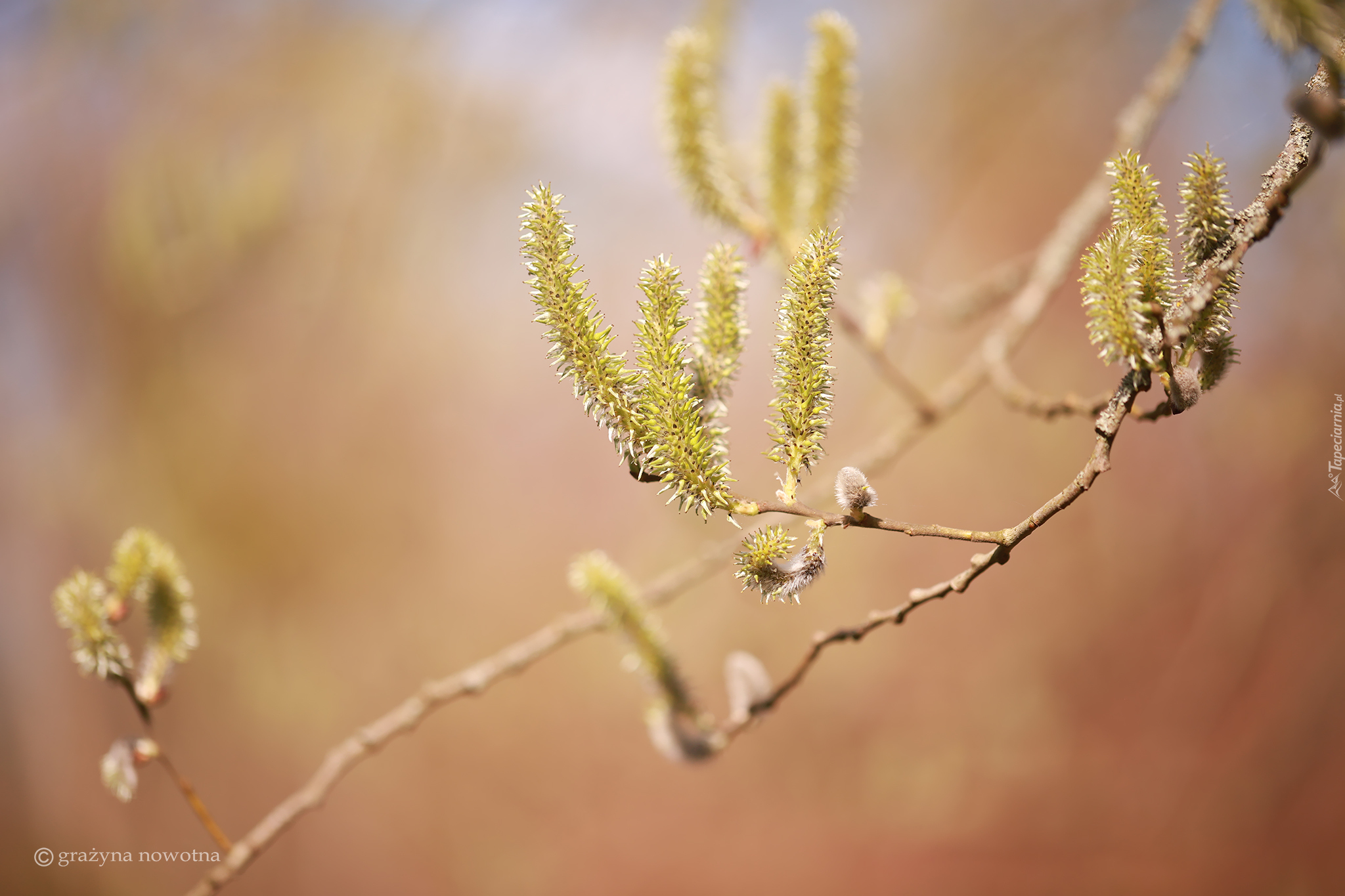 Edytor tapety: Kwiatostany wierzby na gałązkach