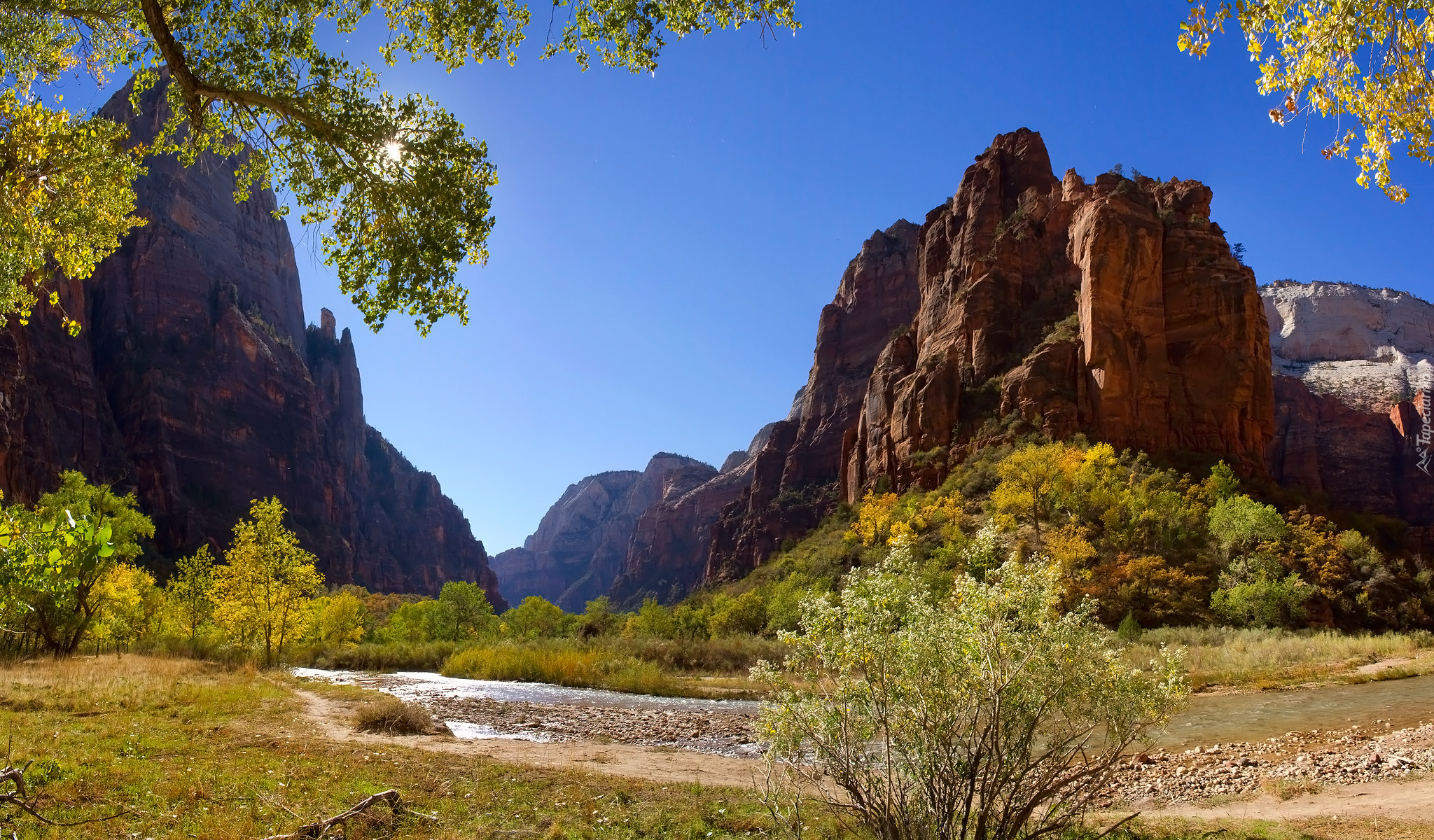 Edytor tapety: Rzeka i góry w Parku Narodowym Zion