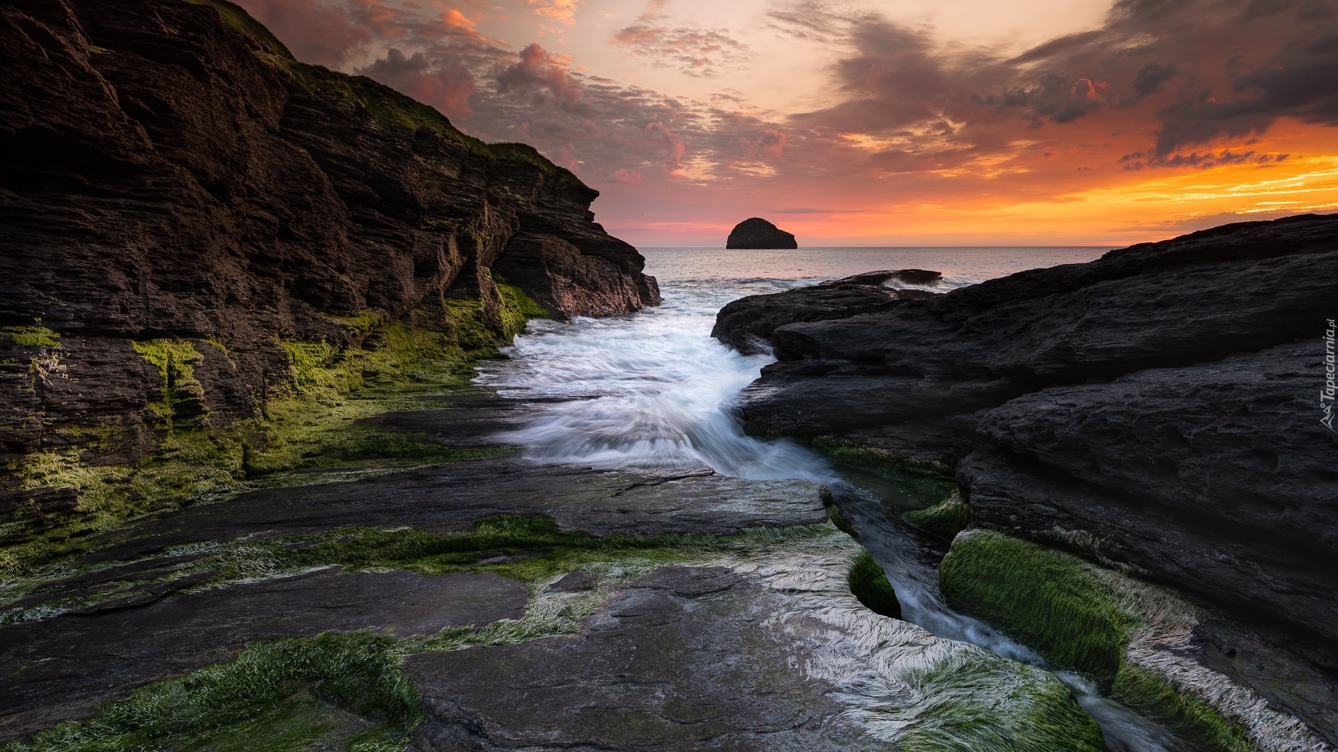 Edytor tapety: Widok na zatokę o zachodzie słońca