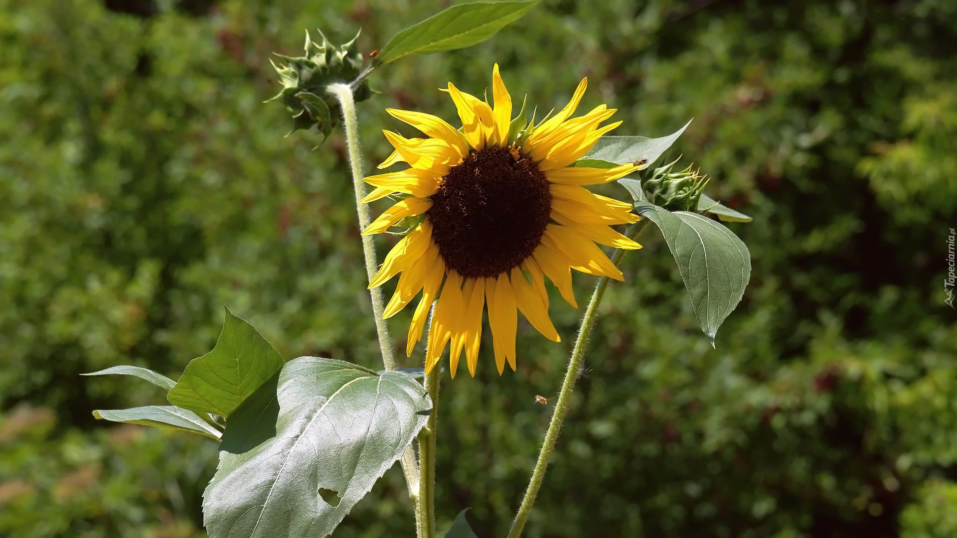 Edytor tapety: Słonecznik z pąkami i liśćmi