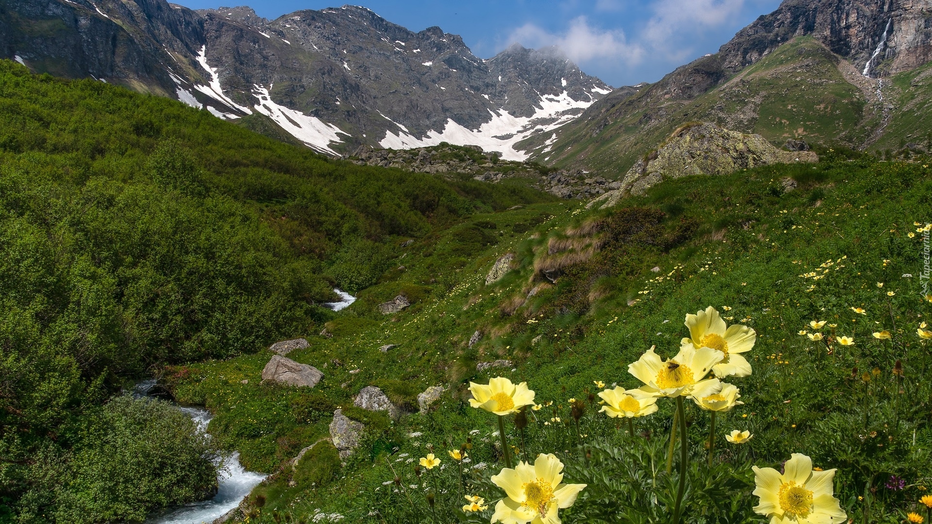 Edytor tapety: Sasanki alpejskie na tle Alp Pennińskich