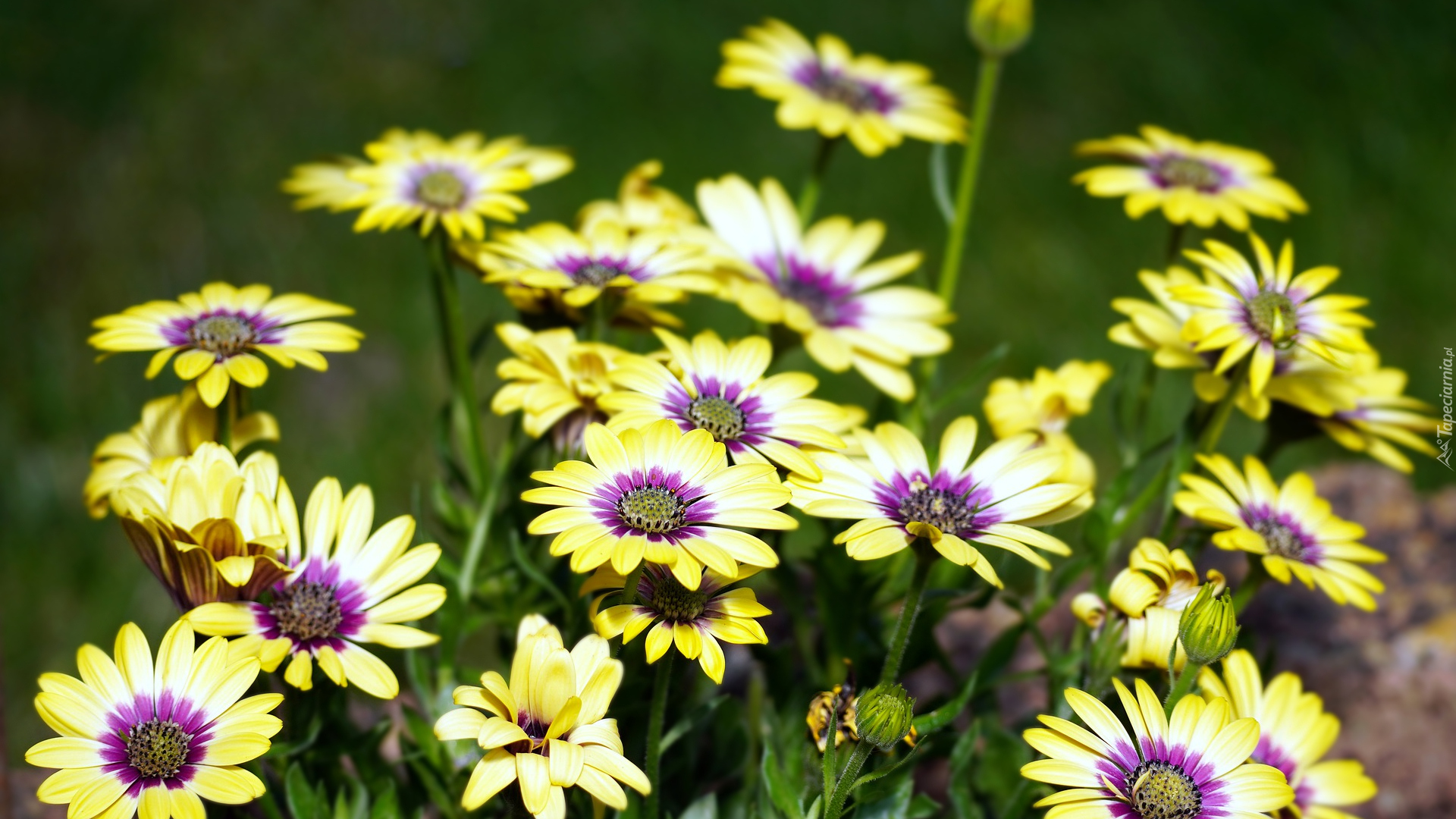 Edytor tapety: Żółto-fioletowe stokrotki afrykańskie