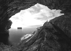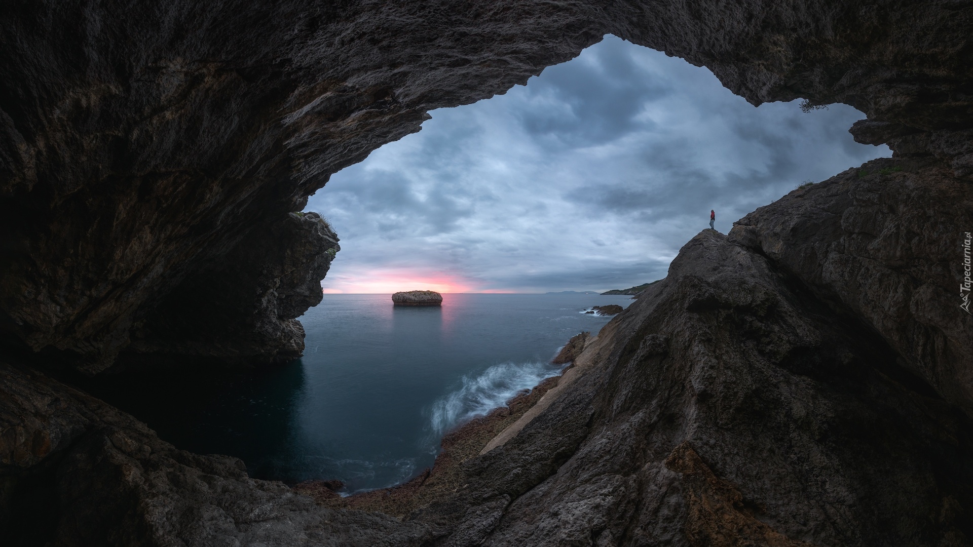 Edytor tapety: Widok z jaskini na chmury nad morzem