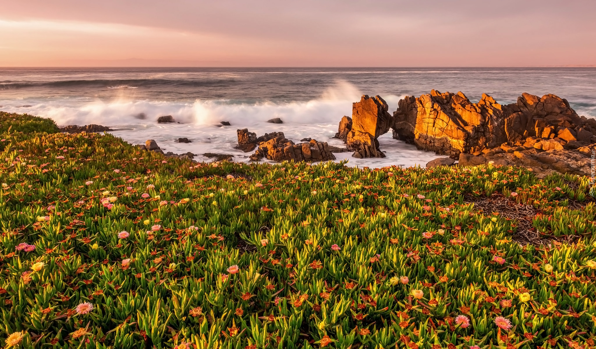 Edytor tapety: Kwiaty i skały na wybrzeżu morza