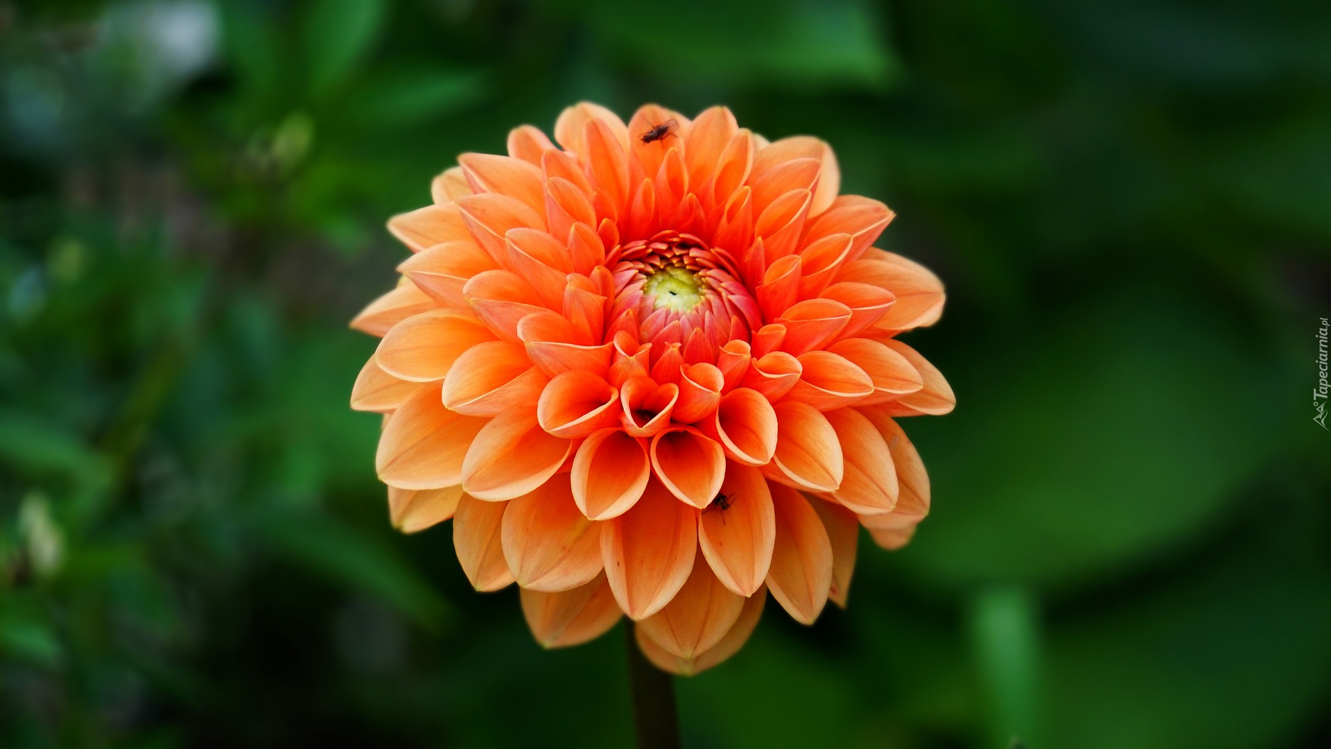 Edytor tapety: Rozkwitająca pomarańczowa dalia na zielonym tle