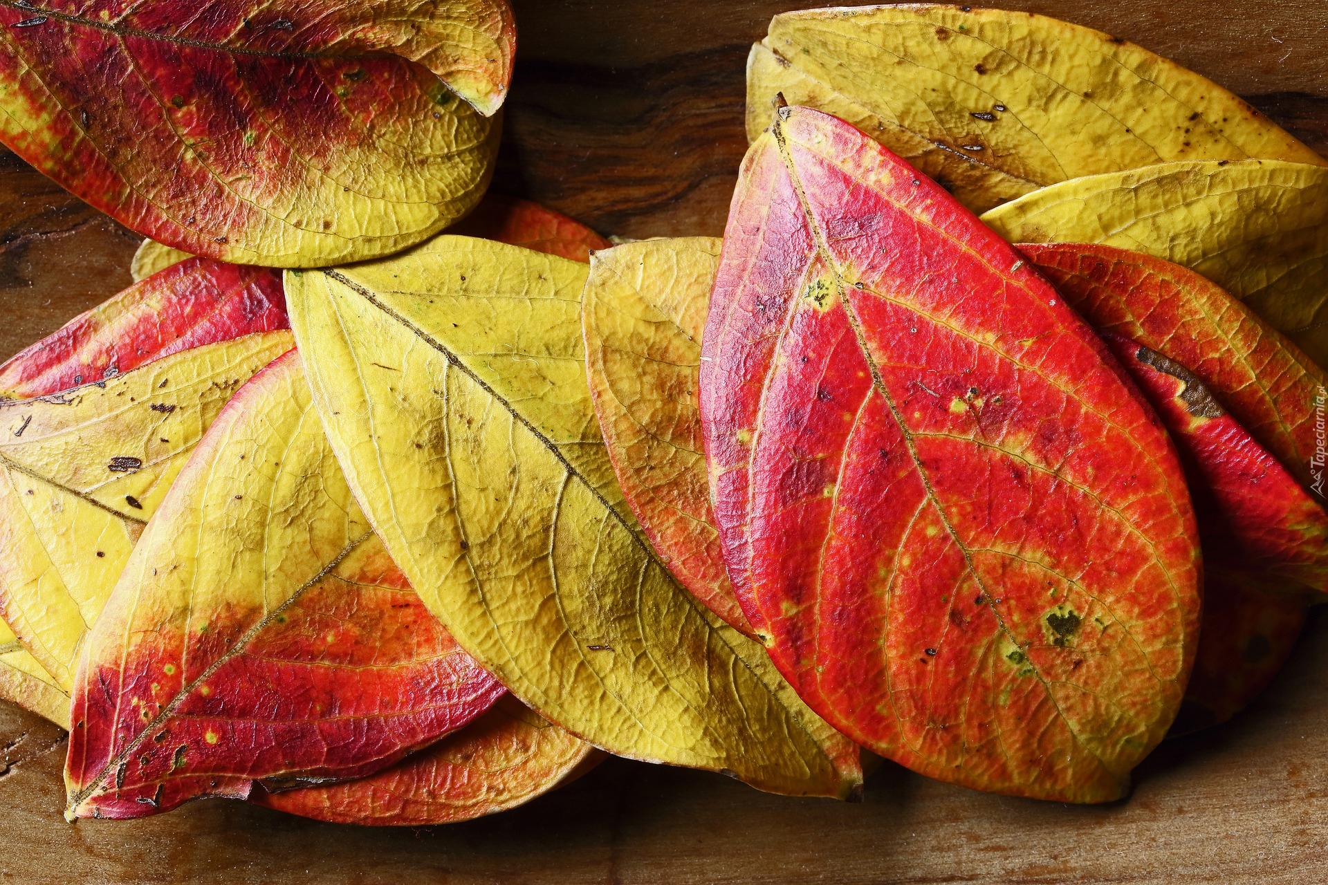 Edytor tapety: Żółto-czerwone liście w zbliżeniu