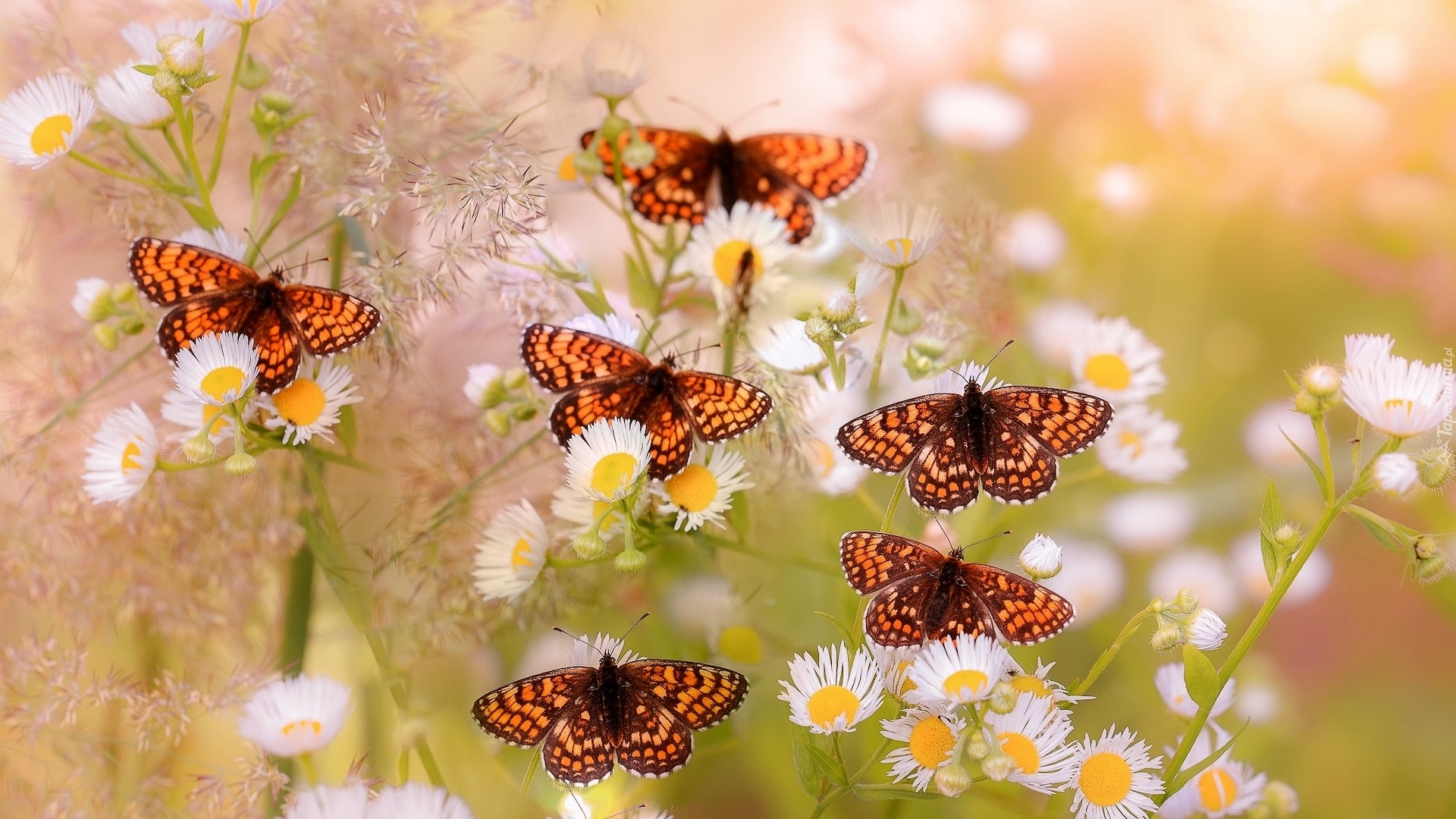 Edytor tapety: Motyle przeplatka atalia na kwiatach przymiotna