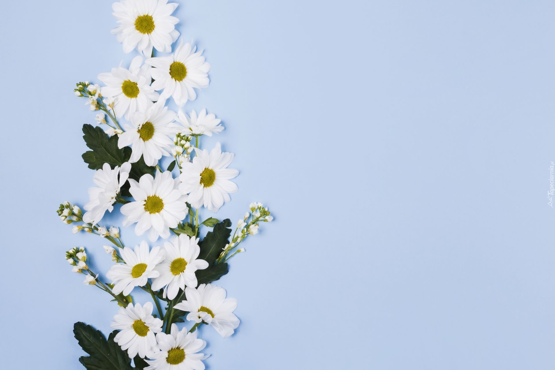 Edytor tapety: Białe kwiaty i liście na niebieskim tle