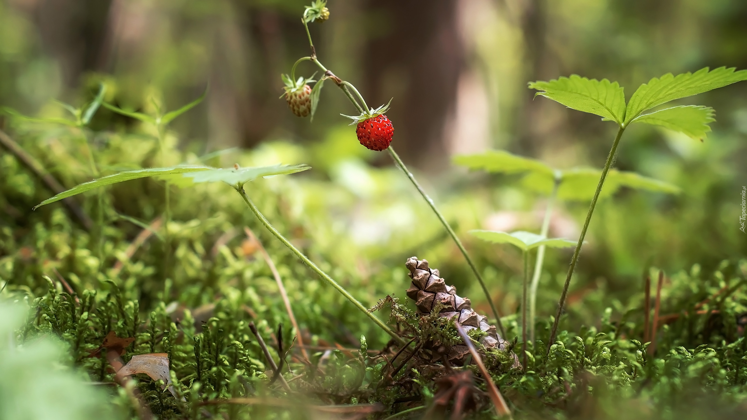 Edytor tapety: Szyszka obok krzaczka poziomek