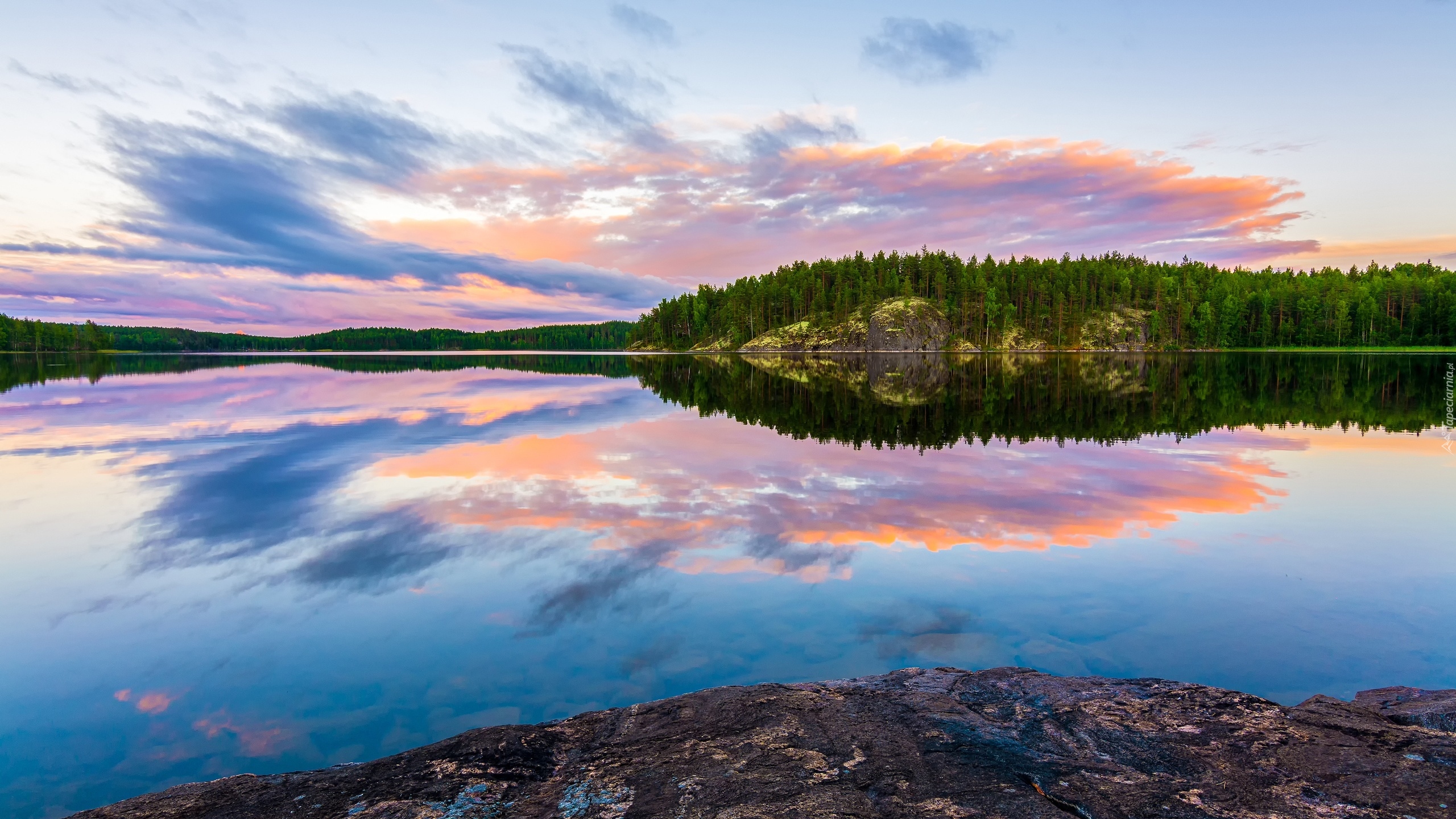Edytor tapety: Odbicie nieba i drzew w jeziorze