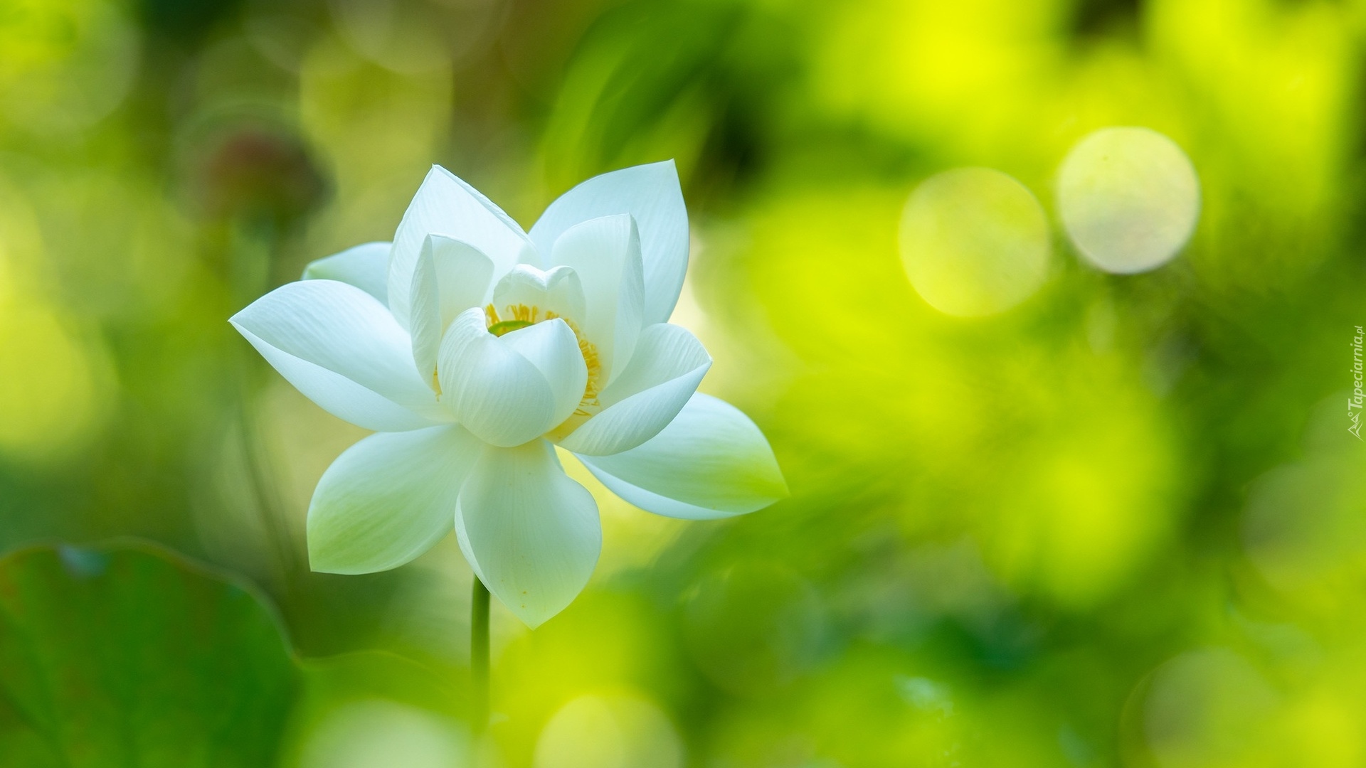 Edytor tapety: Biały kwiat lotosu na zielonym tle