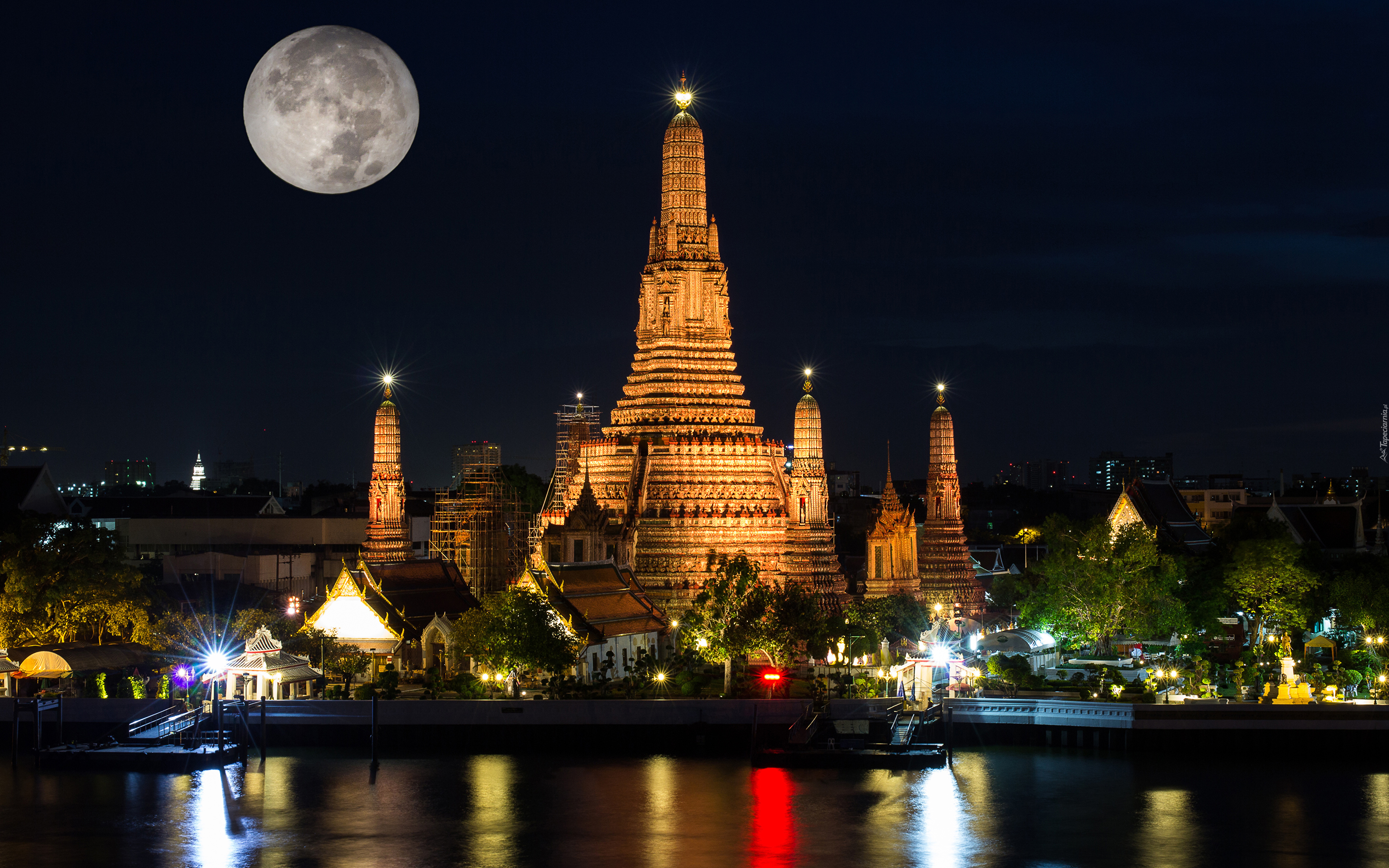 Edytor tapety: Księżyc nad Świątynią Świtu Wat Arun w Bangkoku