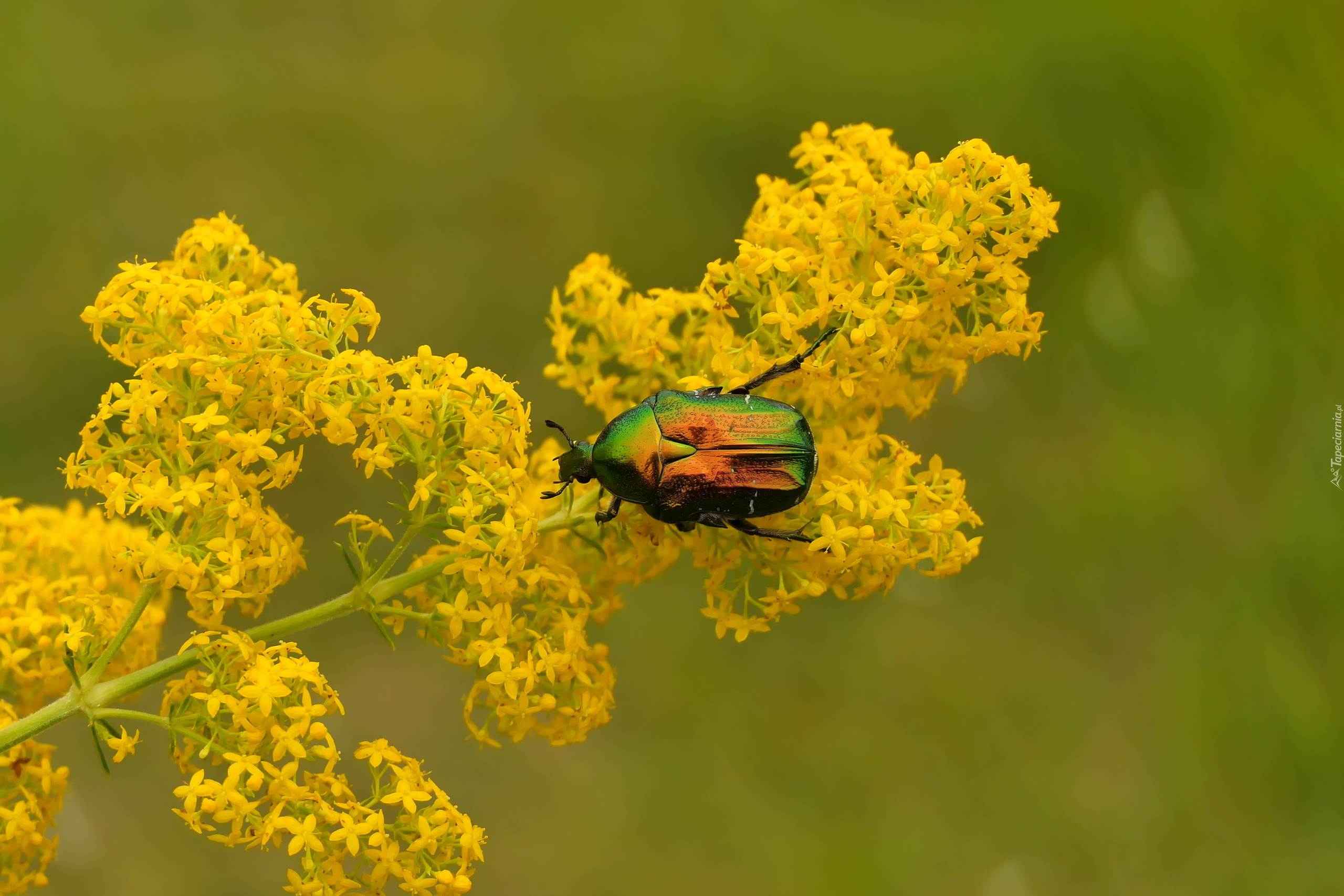 Edytor tapety: Kruszczyca złotawka na żółtych kwiatach