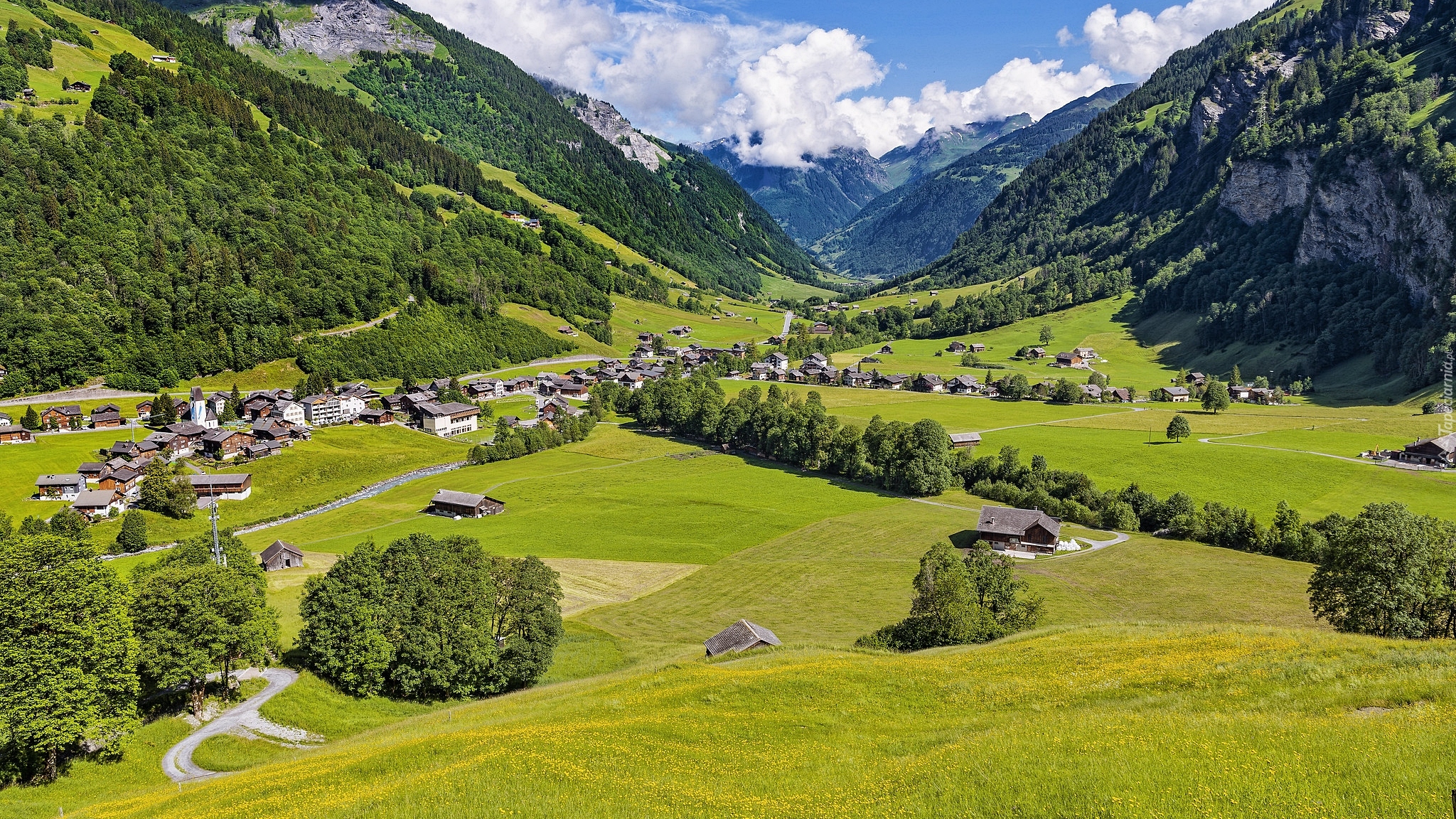 Edytor tapety: Wieś Elm w dolinie Alp Szwajcarskich