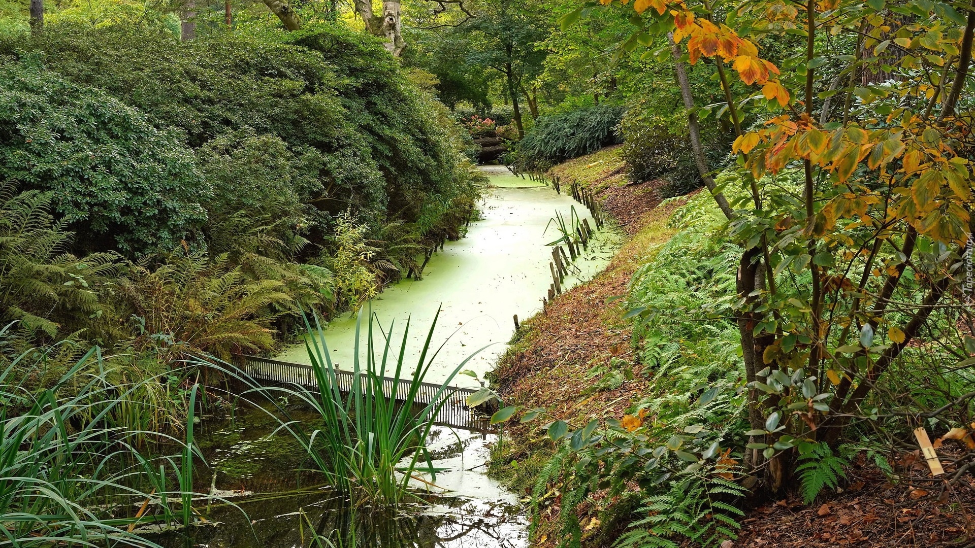 Edytor tapety: Rzeczka w parku pokryta glonami