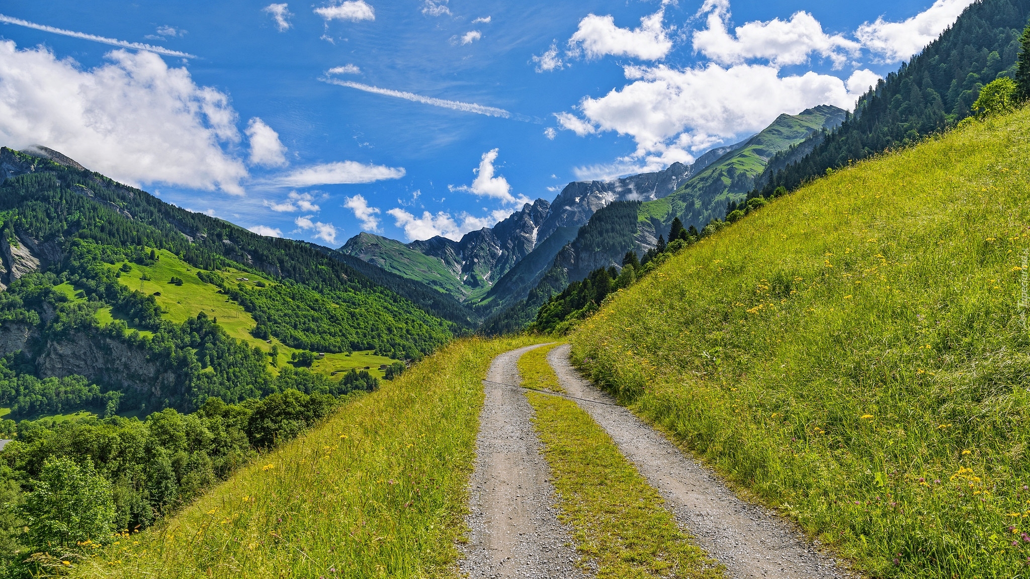 Edytor tapety: Droga z widokiem na Alpy Szwajcarskie