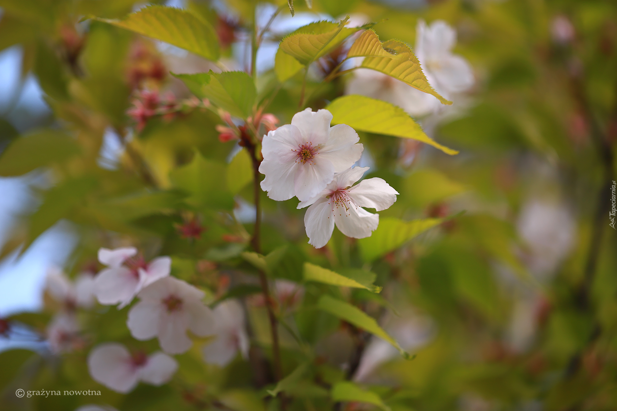 Edytor tapety: Kwiaty wiśni japońskiej na rozmytym tle