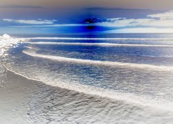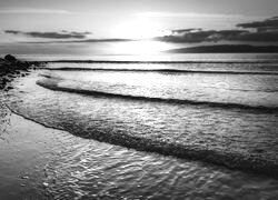 Edytor tapety: Fale na morzu i kamienie na brzegu o zachodzie słońca