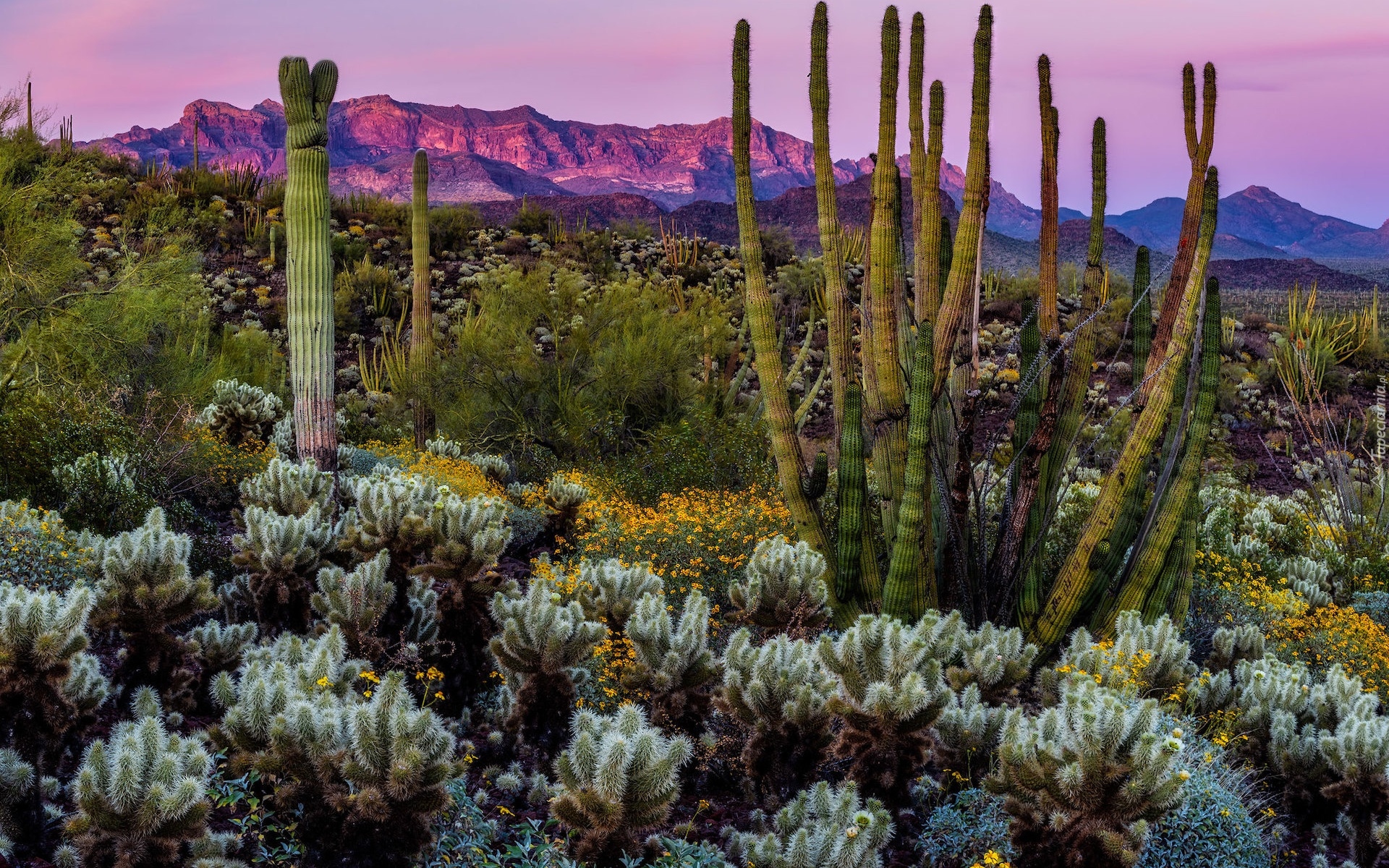 Edytor tapety: Kaktusy na pustyni Sonoran Desert w Arizonie
