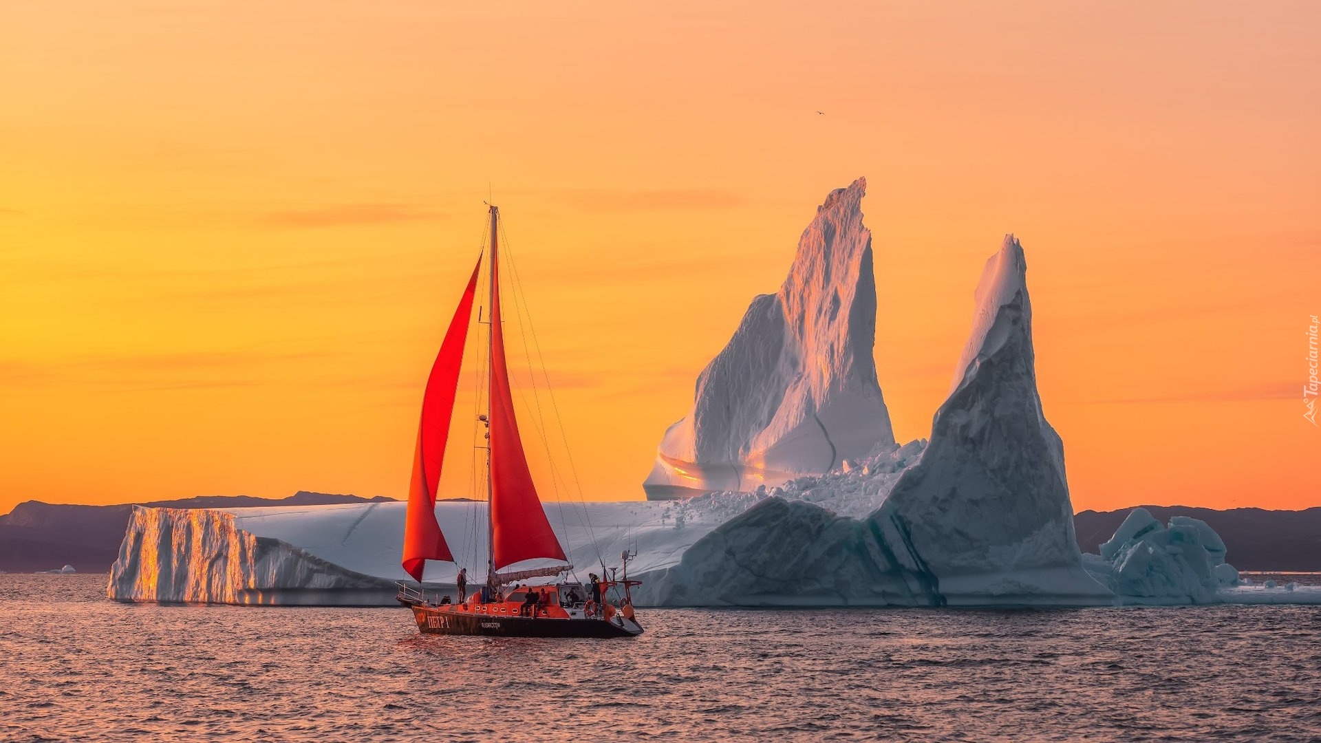 Edytor tapety: Żaglowiec i góra lodowa na morzu