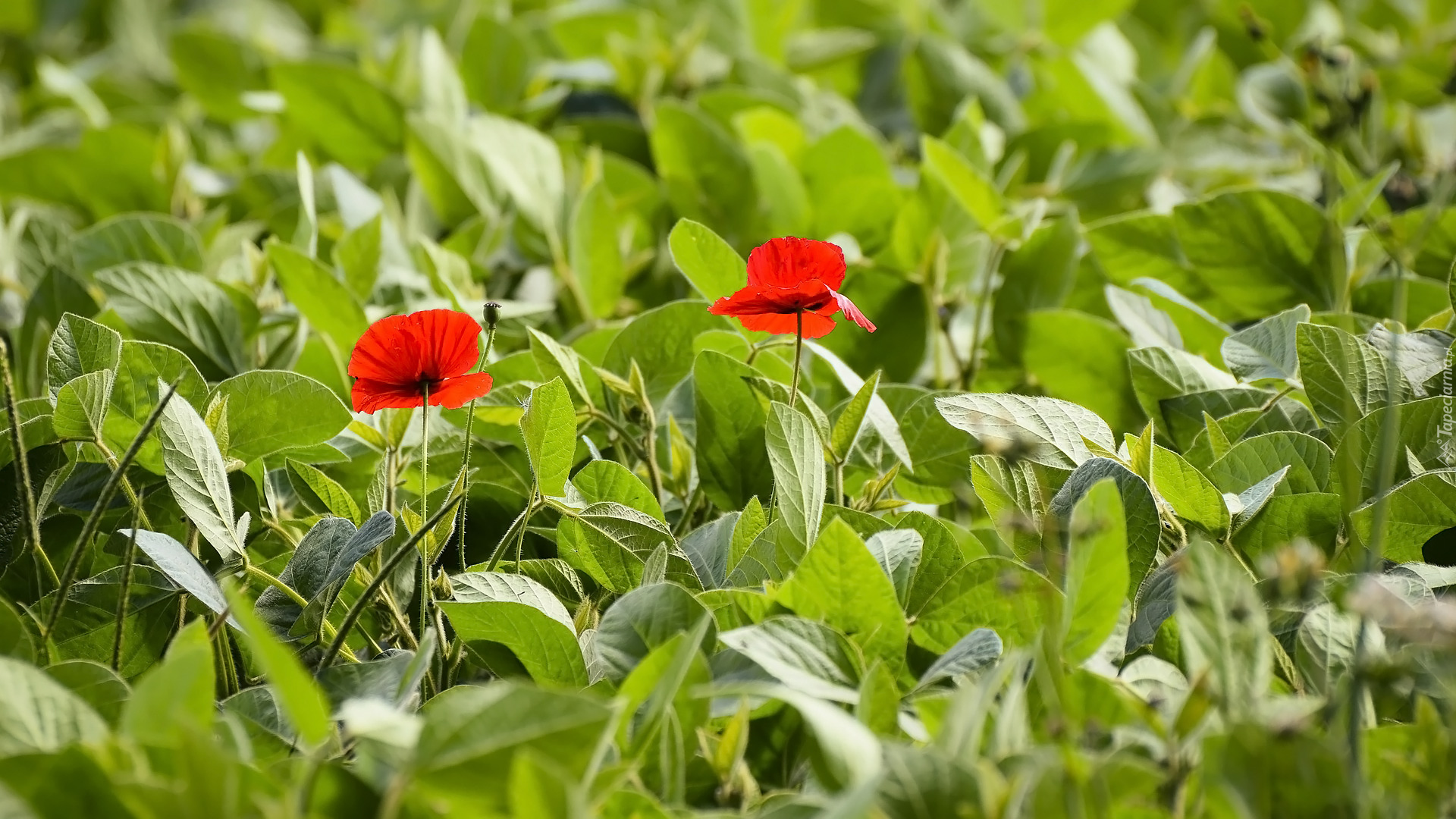 Edytor tapety: Dwa czerwone maki w zielonych liściach