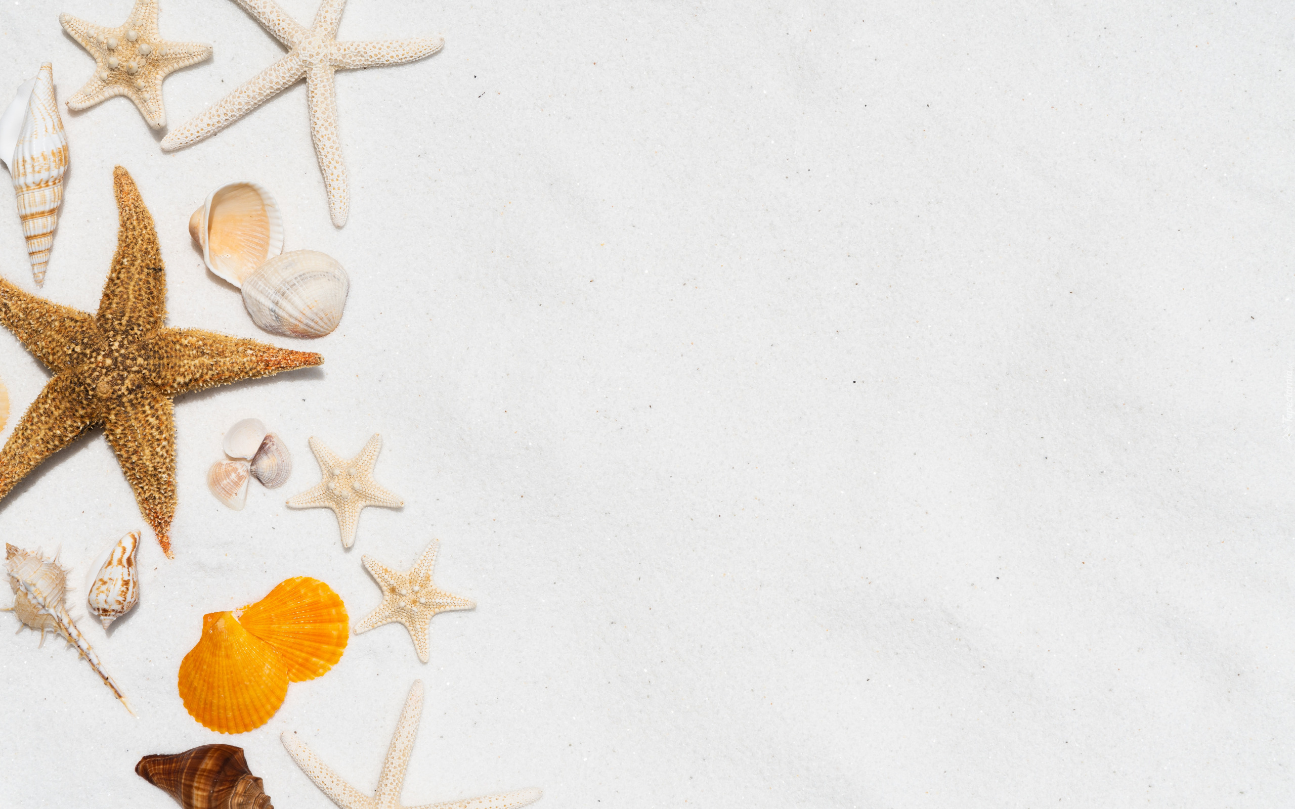 Edytor tapety: Rozgwiazdy i muszelki na białym tle