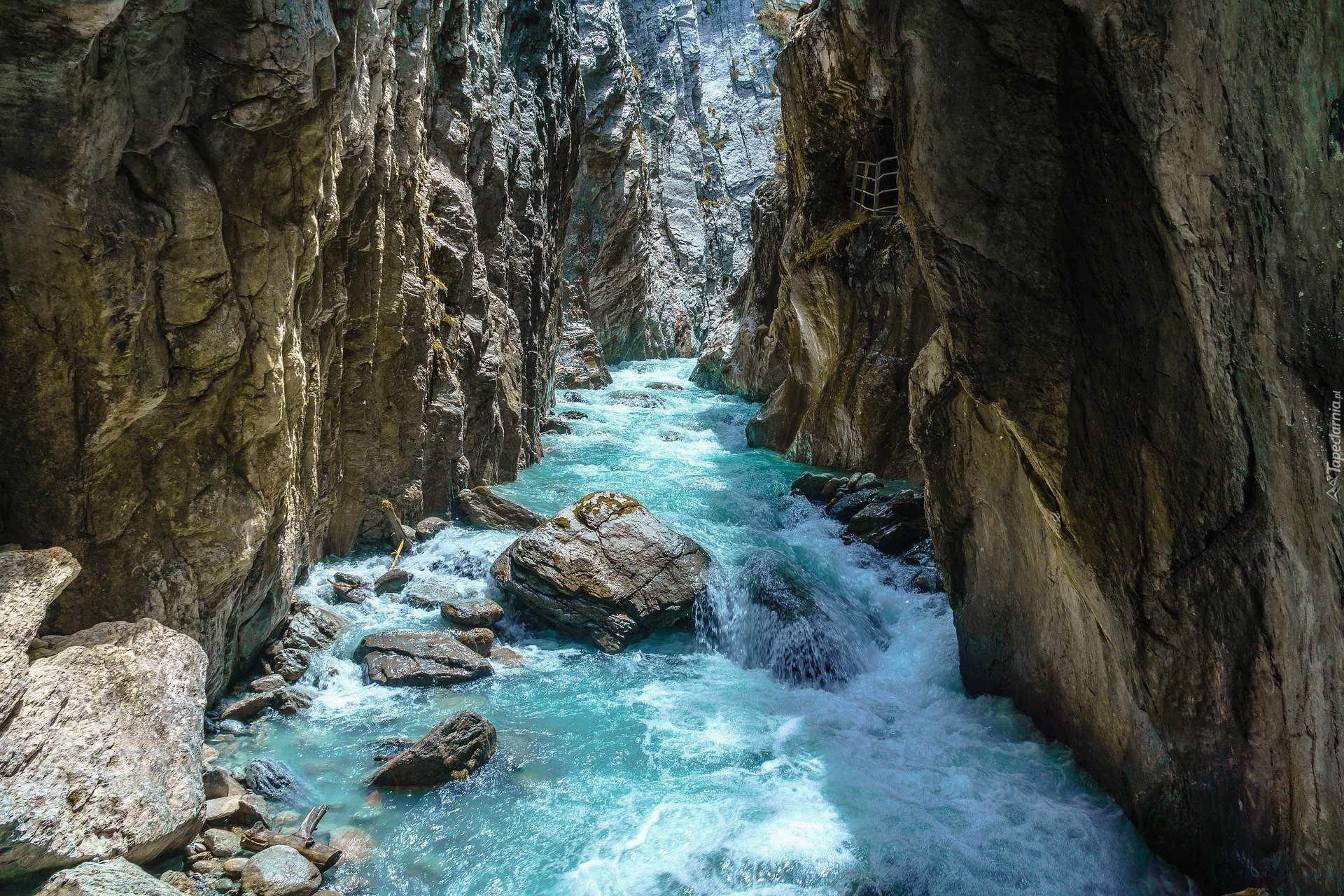 Edytor tapety: Rzeka w wąwozie Gletscherschlucht Rosenlaui w Szwajcarii