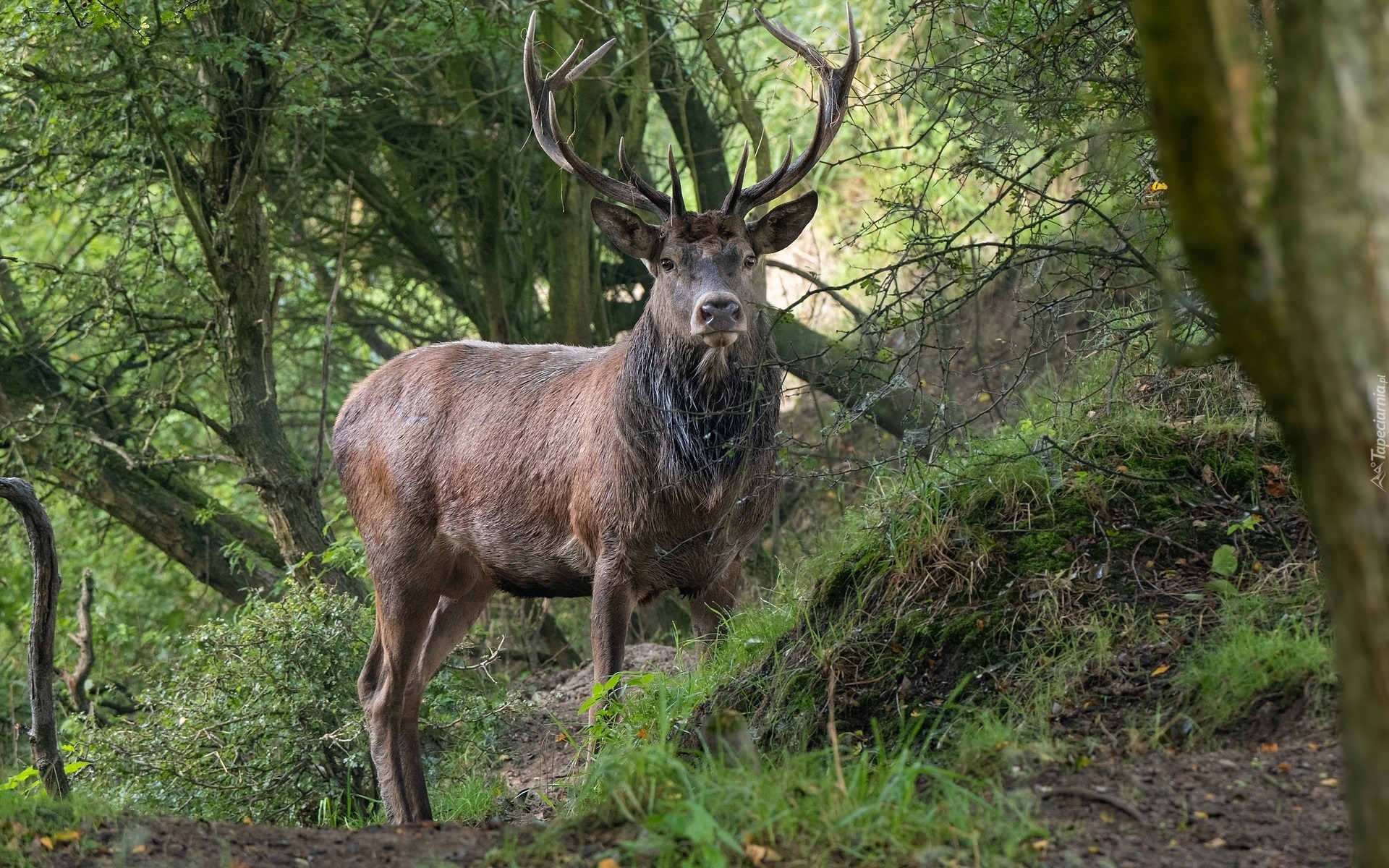 Edytor tapety: Jeleń pod drzewami w lesie