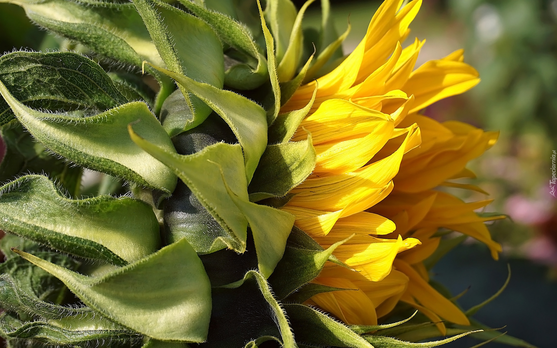 Edytor tapety: Pąk kwitnącego słonecznika