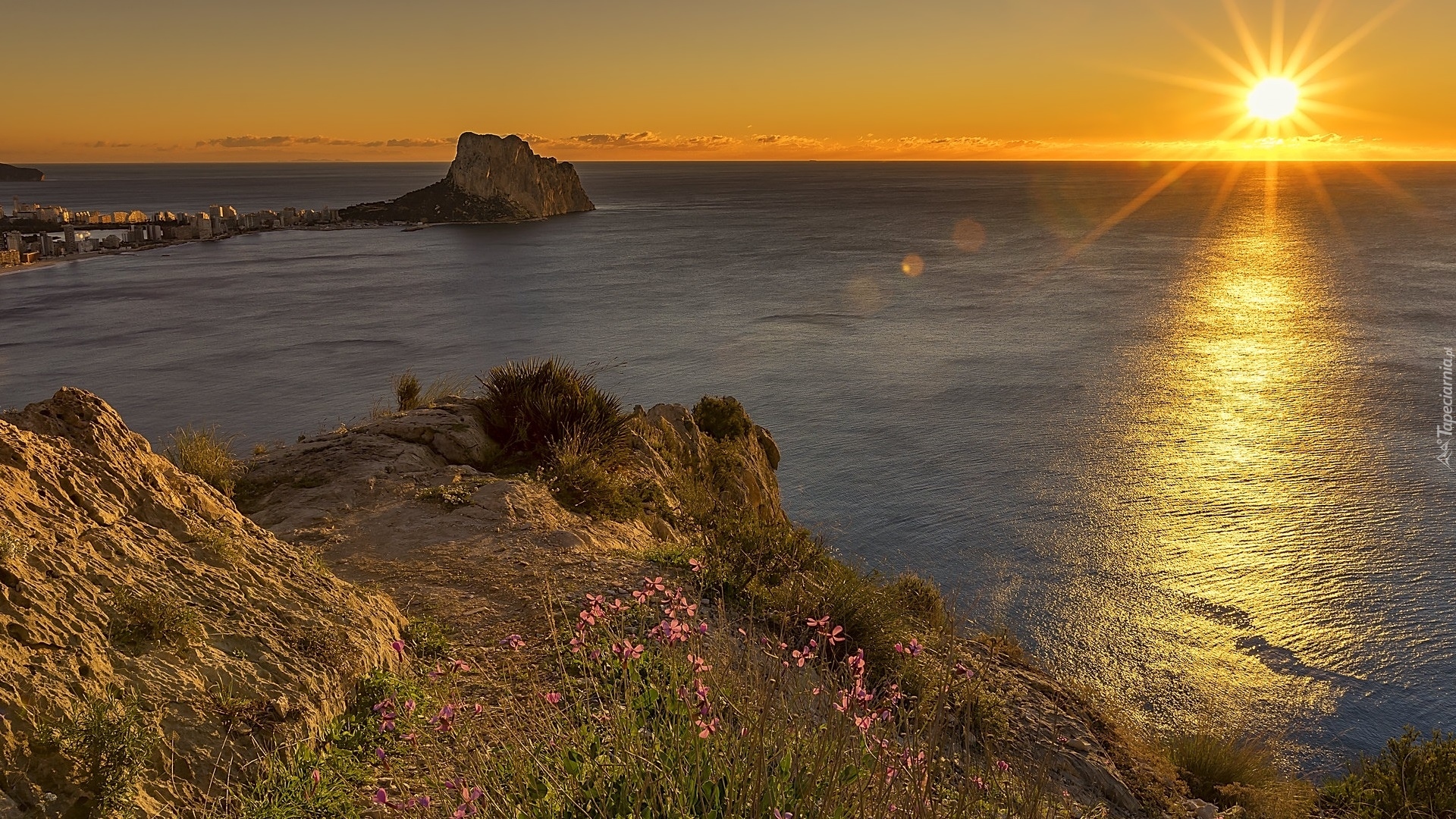 Edytor tapety: Zachód słońca nad klifem
