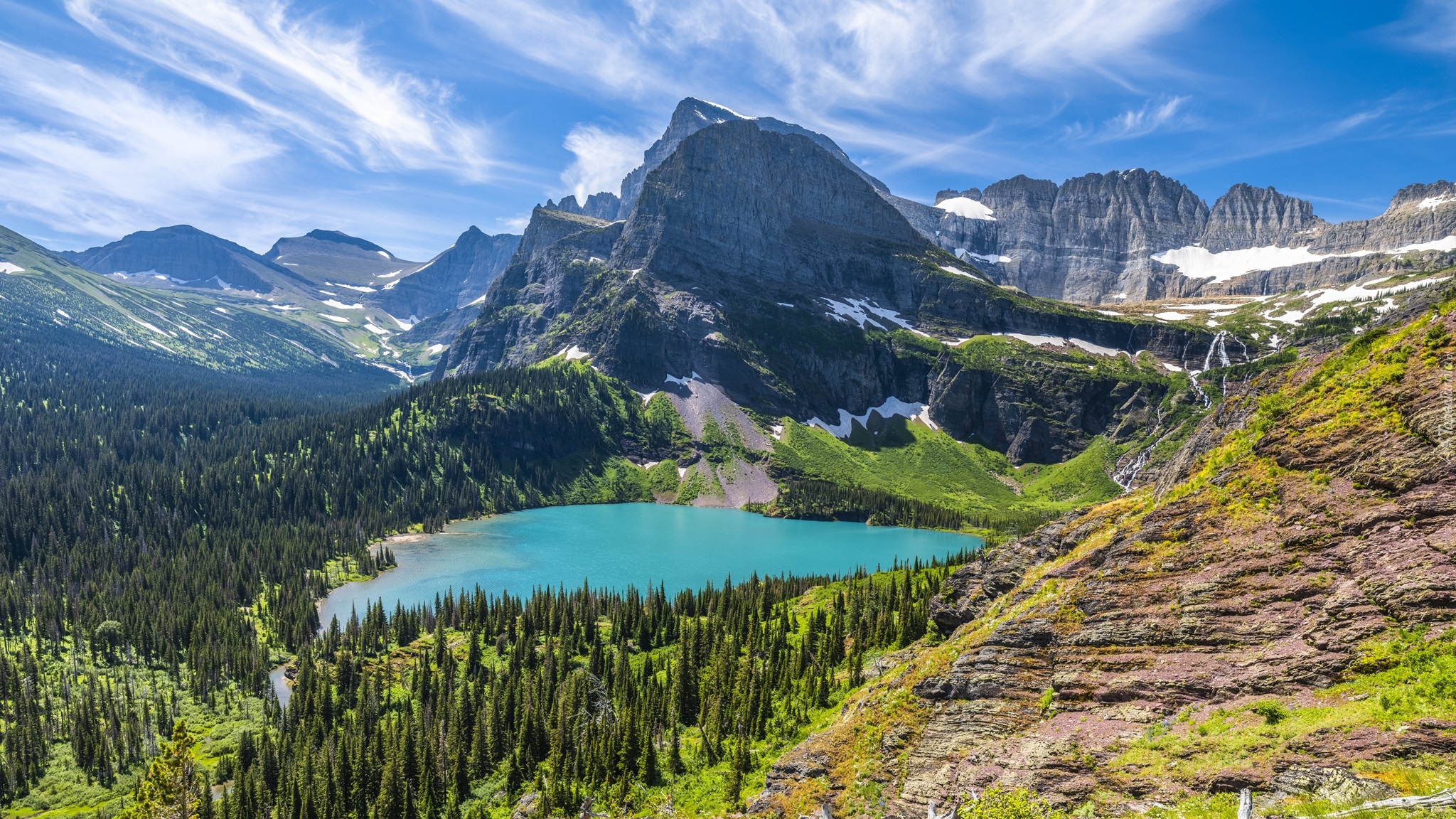 Edytor tapety: Jezioro Grinnell i skały w Parku Narodowym Glacier