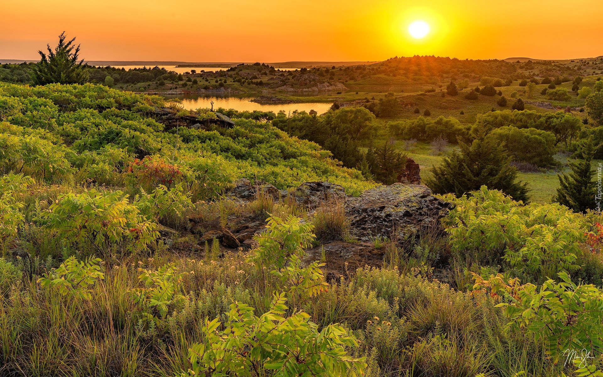 Edytor tapety: Łąka o zachodzie słońca