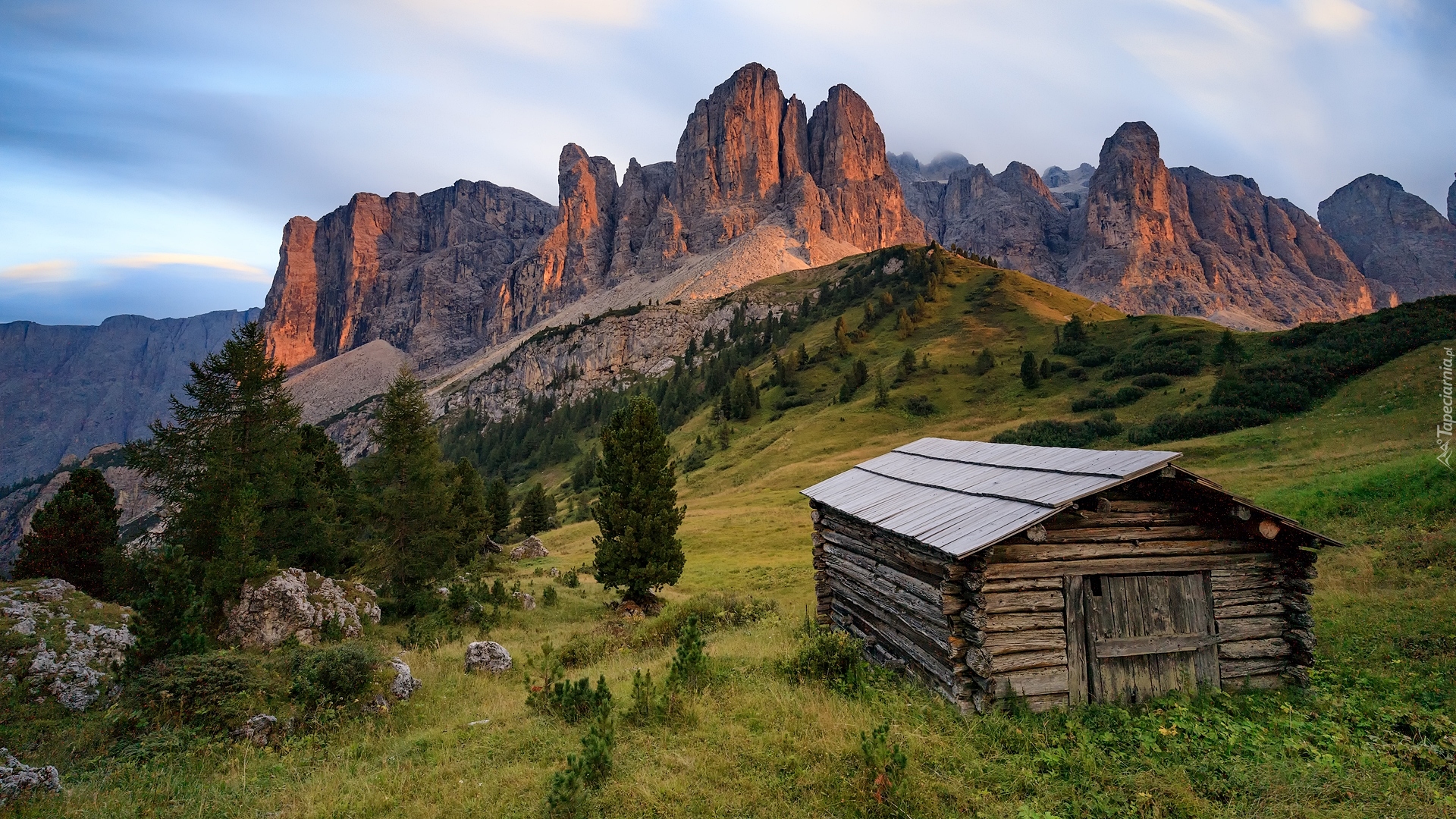Edytor tapety: Szopa na tle Dolomitów