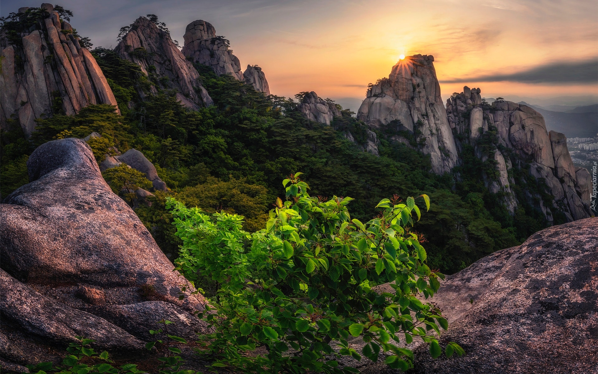 Edytor tapety: Krzew na skale i szczyty gór