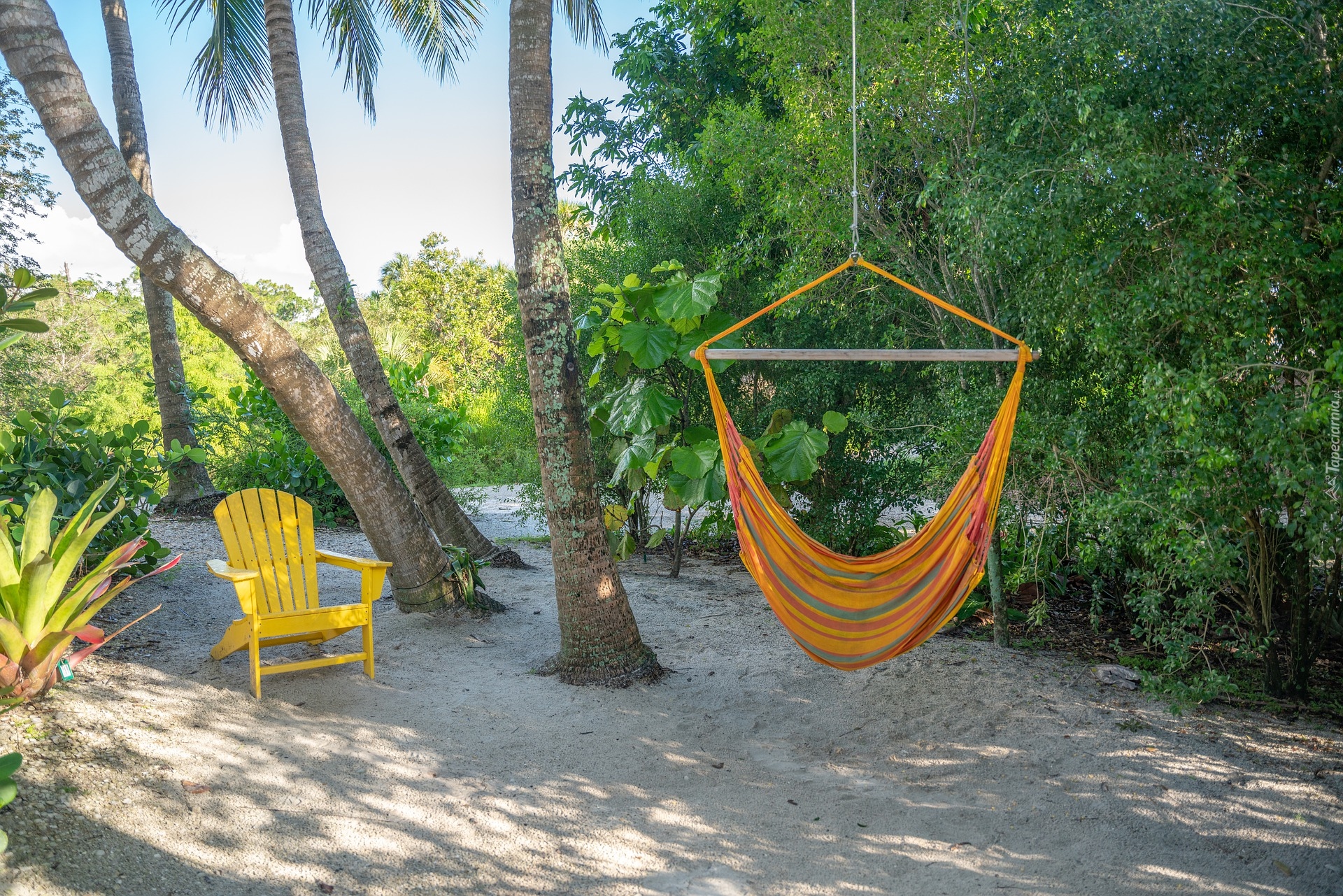 Edytor tapety: Krzesło obok palmy z hamakiem