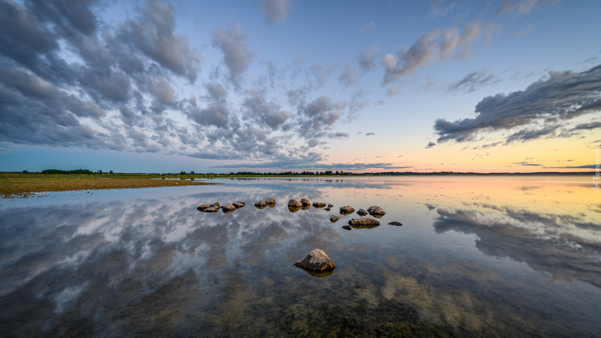 Edytor tapety: Poranek nad jeziorem Roxen w Szwecji