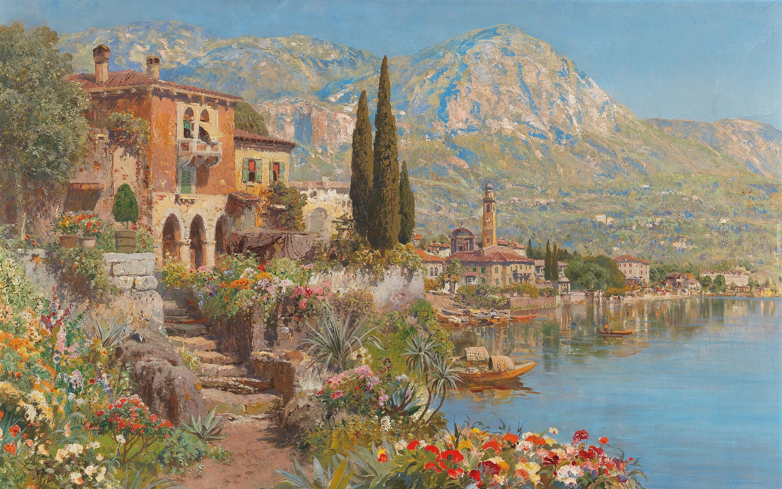 Edytor tapety: Wille nad jeziorem Garda na obrazie Aloisa Arneggera