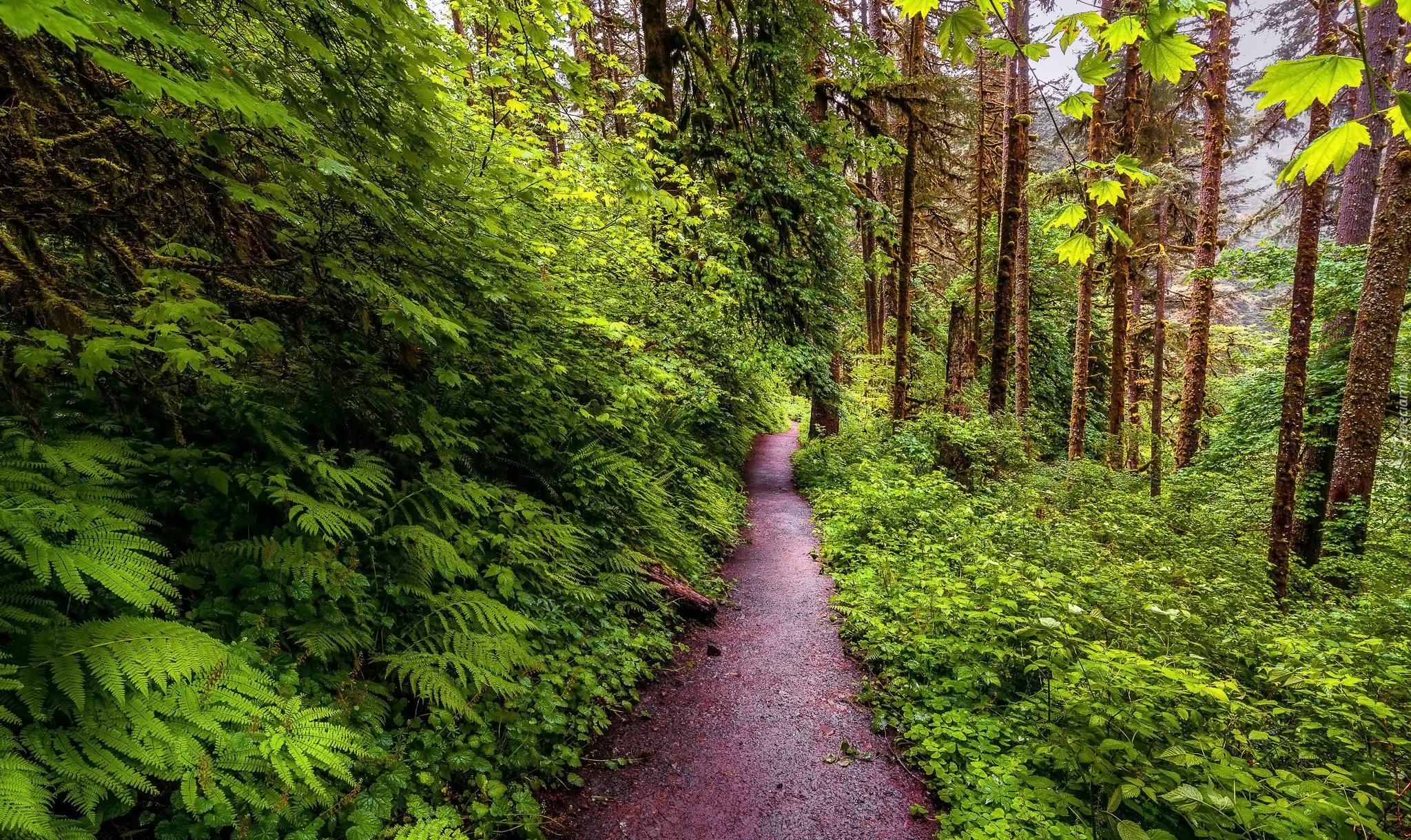 Edytor tapety: Rośliny i drzewa wzdłuż leśnej ścieżki