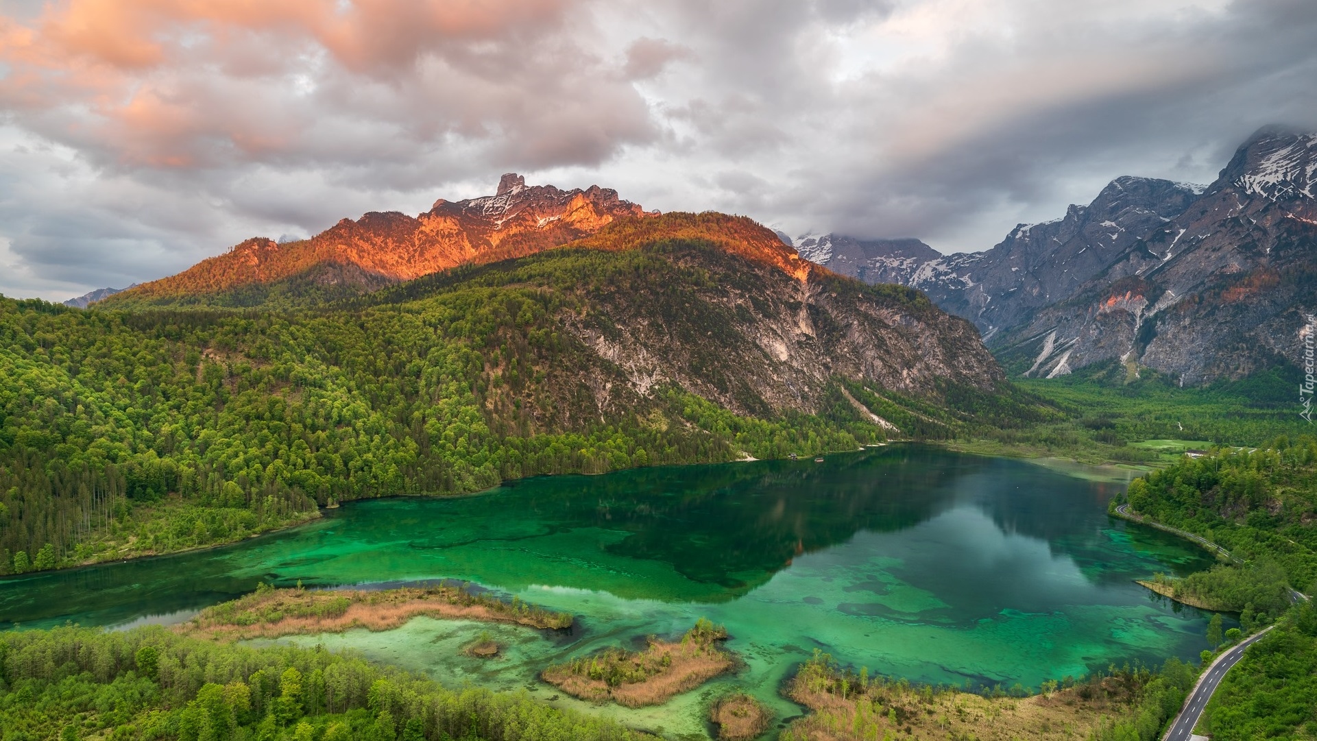 Edytor tapety: Góry i jezioro Almsee w Austrii