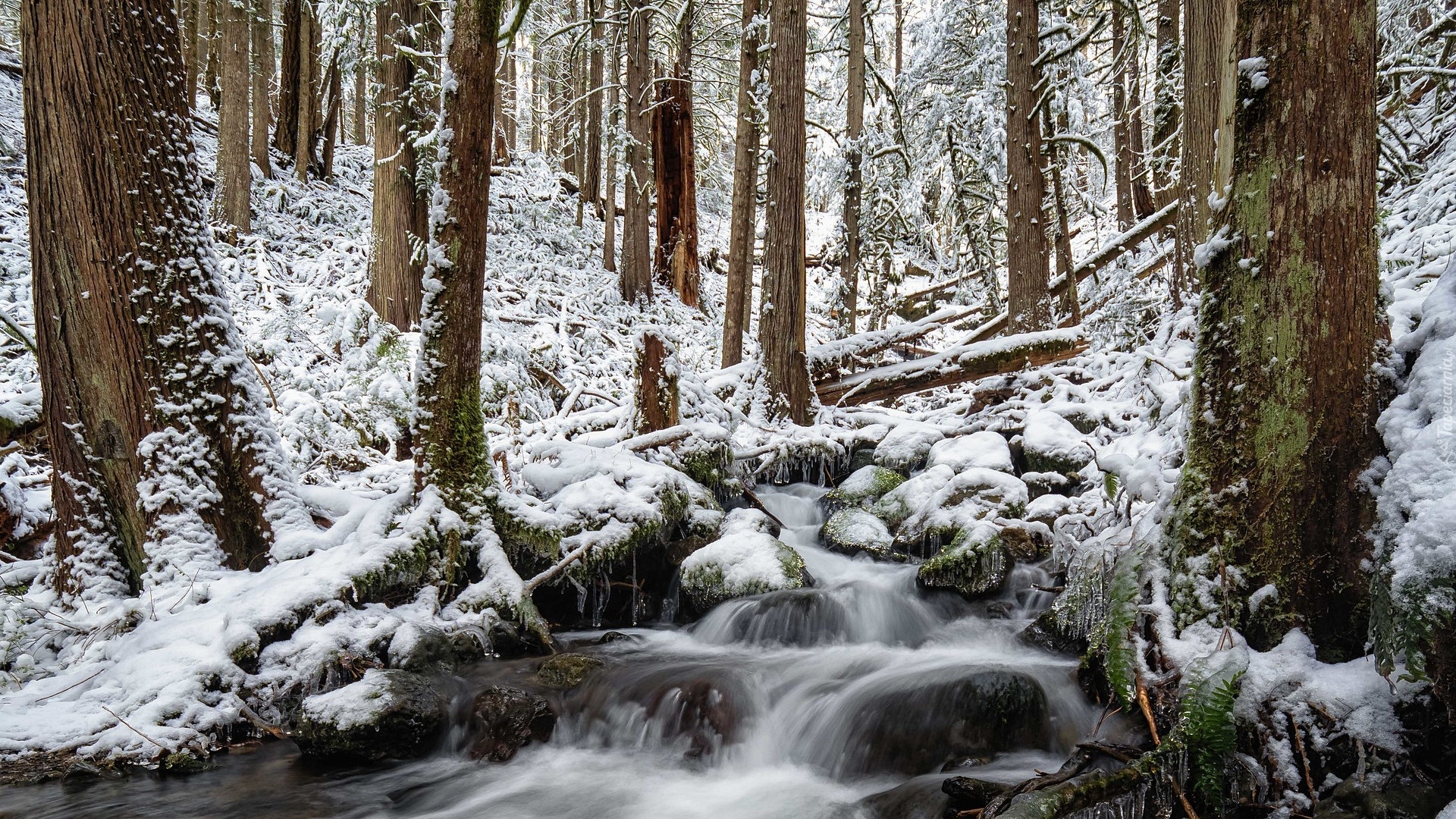 Edytor tapety: Strumień w zimowym lesie