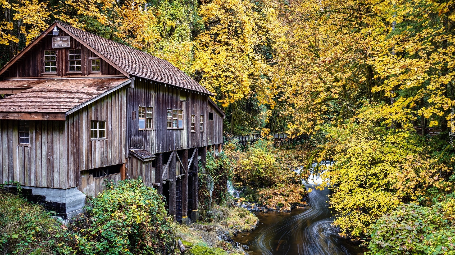 Edytor tapety: Młyn Cedar Creek Grist Mill wśród drzew
