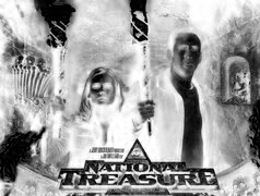 Edytor tapety: National Treasure 1, Diane Kruger, Nicolas Cage, pochodnie, podziemie