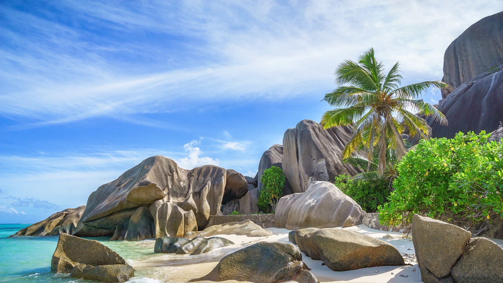 Edytor tapety: Palma kokosowa wśród skał na plaży