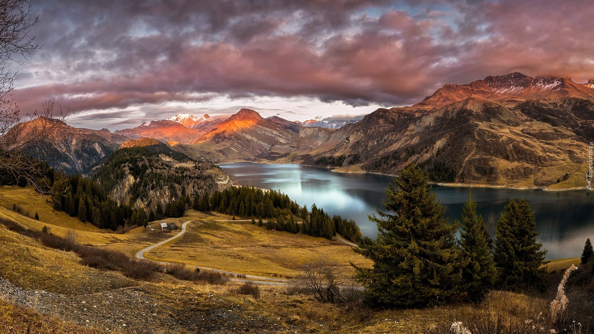 Edytor tapety: Chmury nad alpejskim jeziorem Roselend we Francji