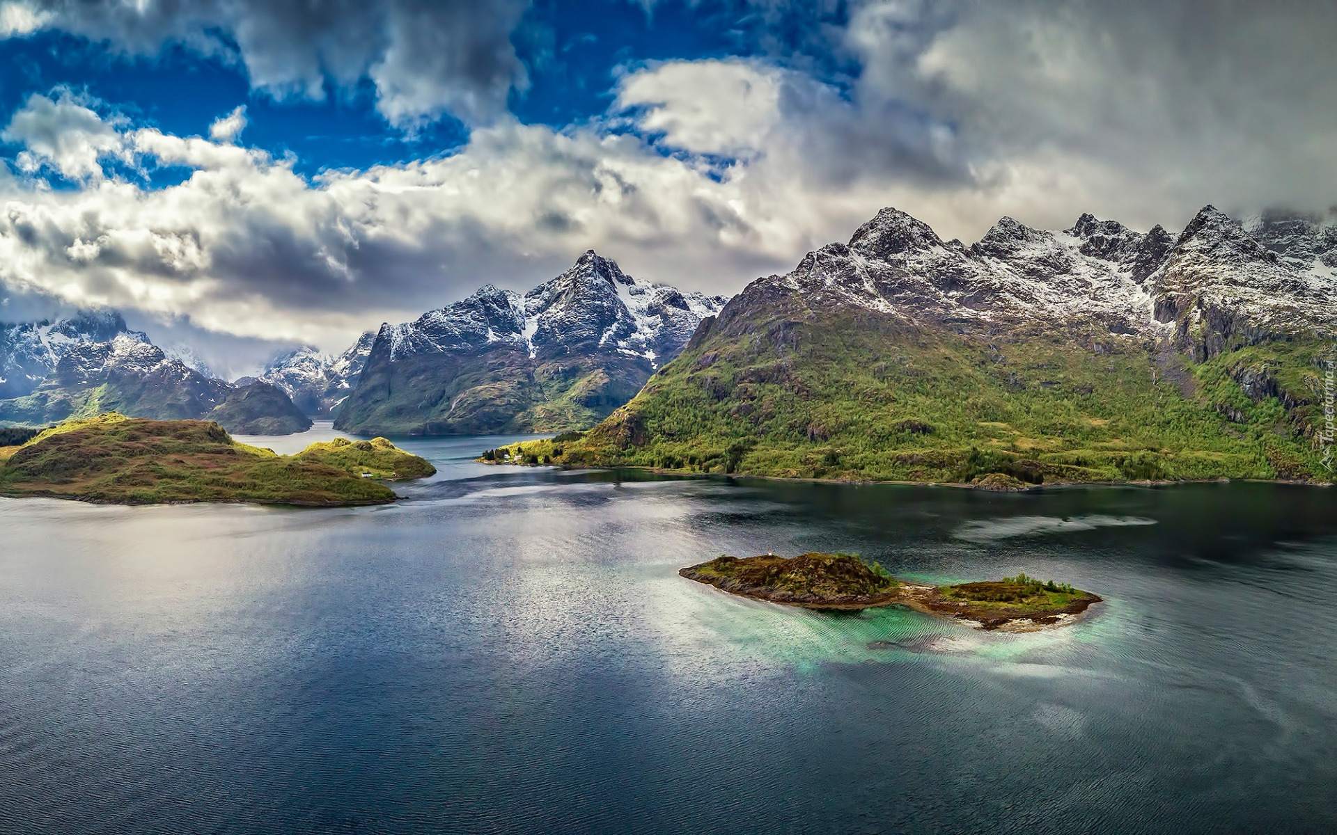 Edytor tapety: Chmury nad wyspą Austvagoya na norweskich Lofotach