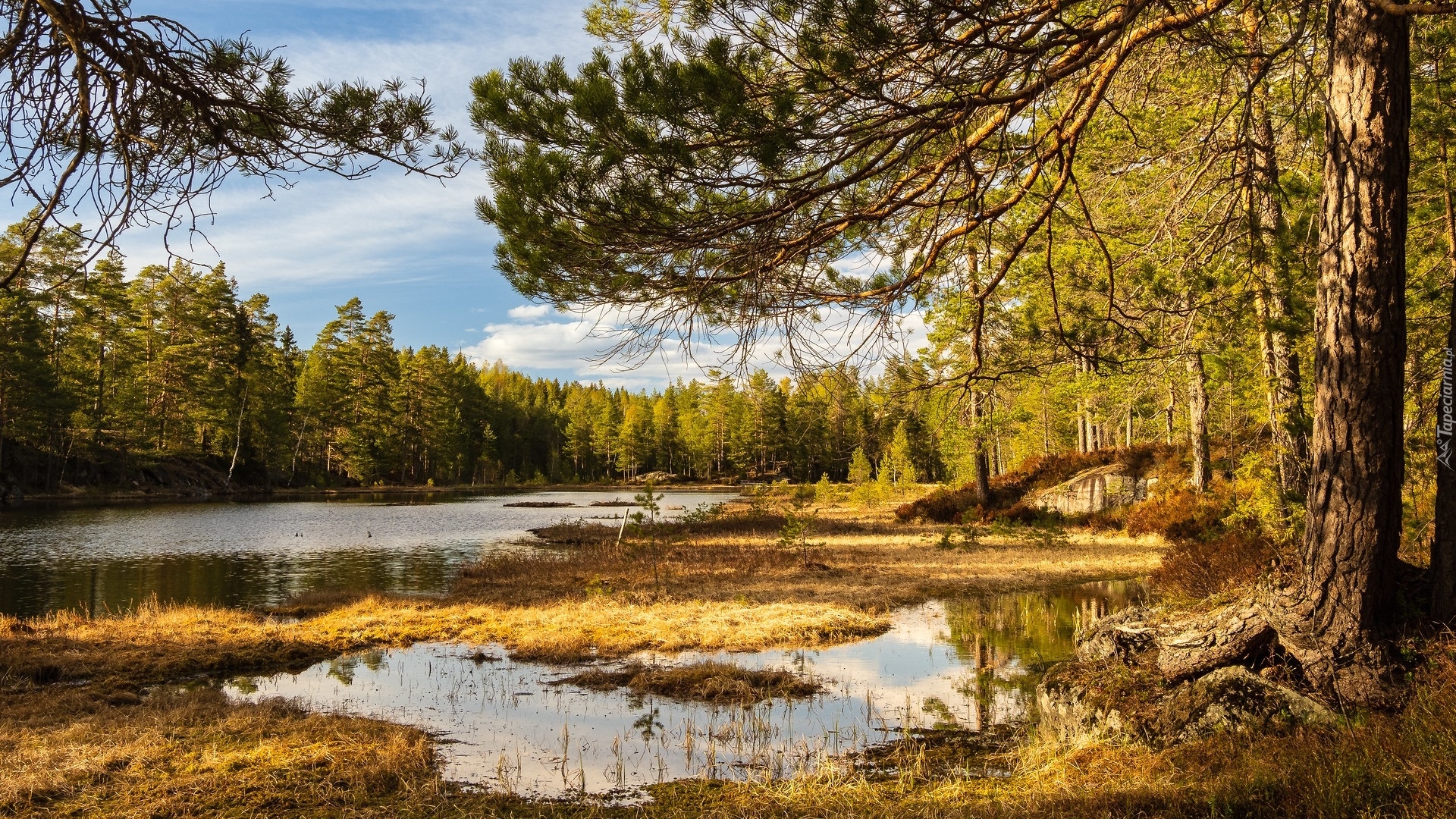 Edytor tapety: Drzewa nad jeziorem w Romeriksasen